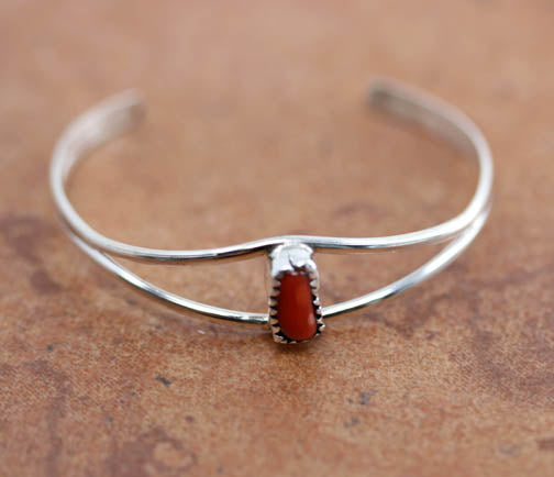 Sterling Silver Navajo Coral Children's Cuff Bracelet.