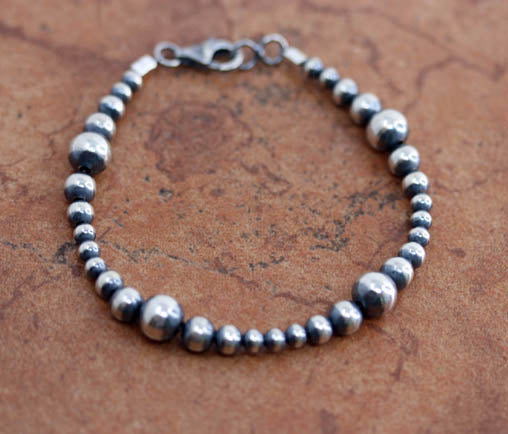 Beaded Desert Pearl Style Sterling Silver Bracelet