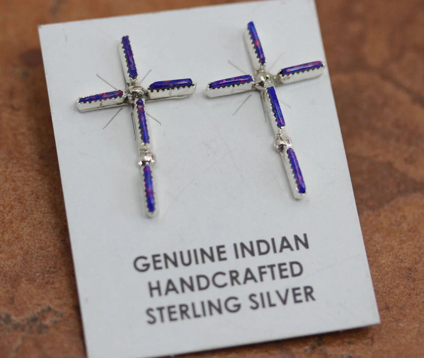 Sterling Silver Zuni Created Opal Cross Earrings