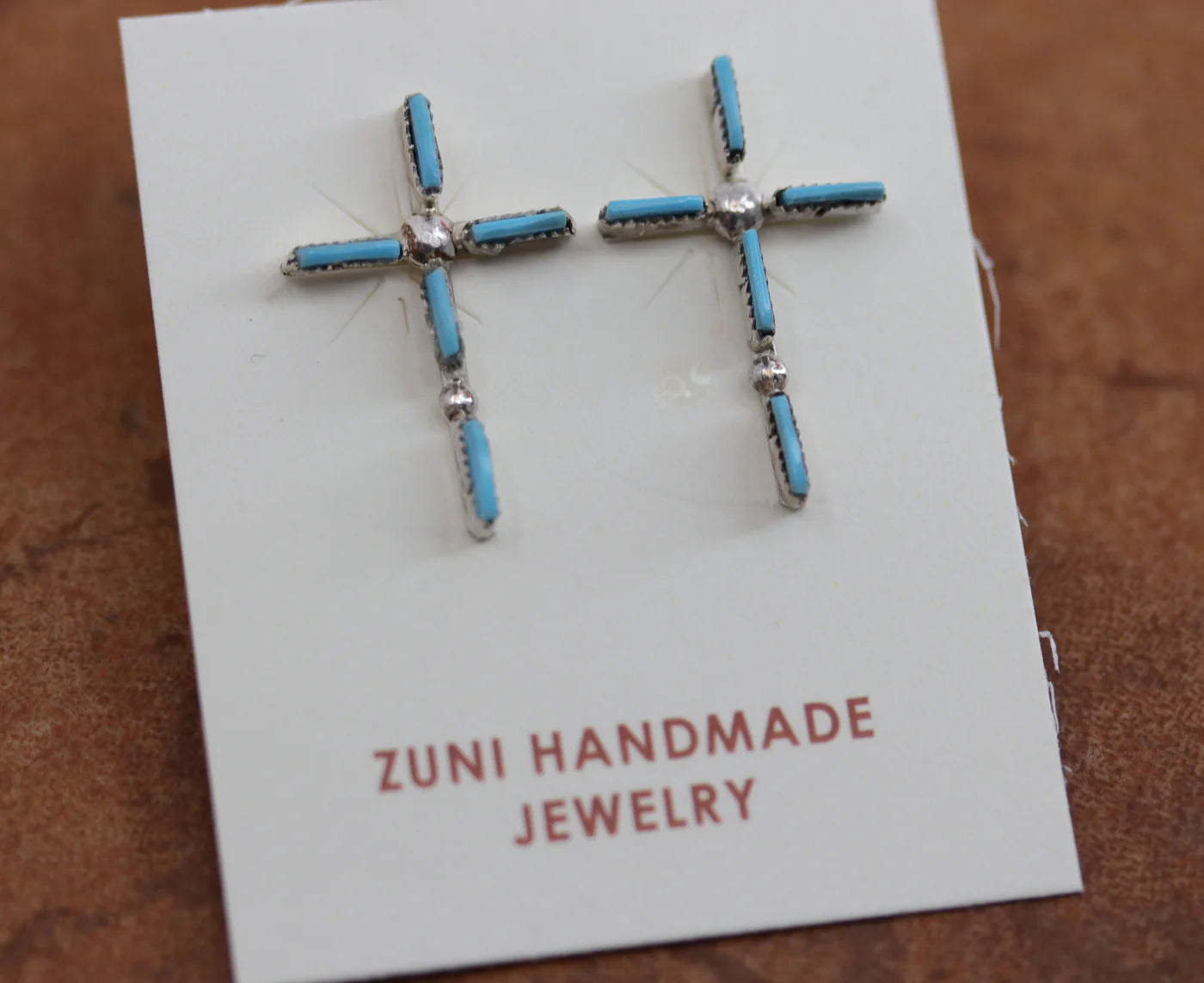 Sterling Silver Zuni Turquoise Cross Earrings