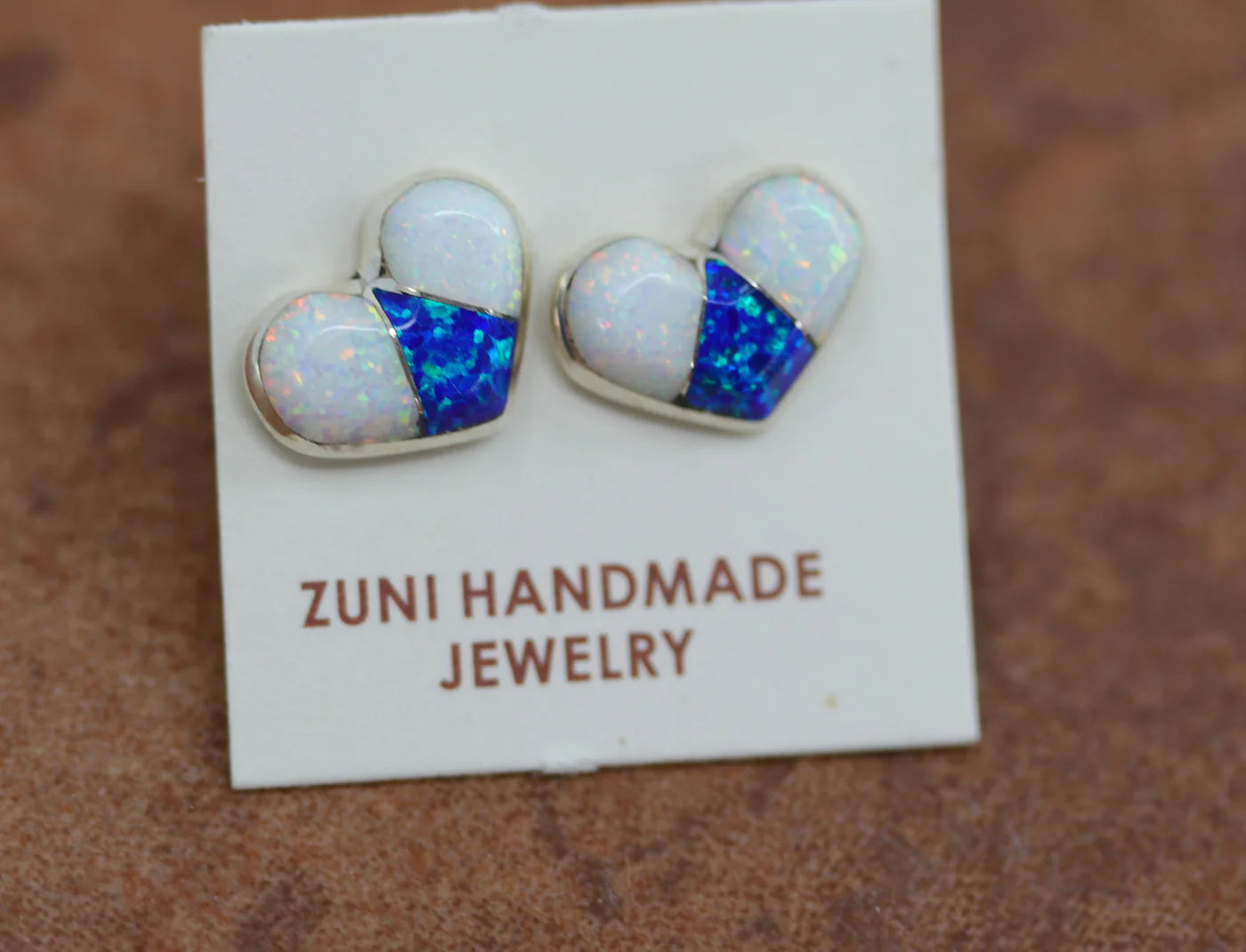 Sterling Silver Zuni Created Opal Heart Earrings