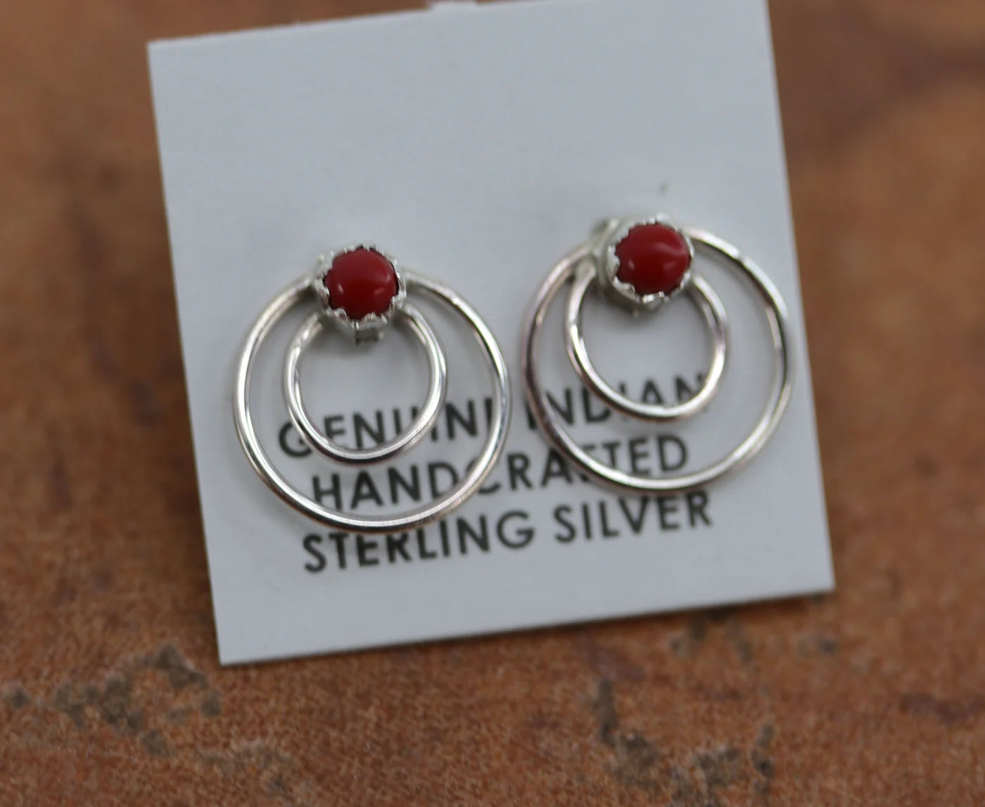 Sterling Silver Navajo Circle of Life Coral Earrings