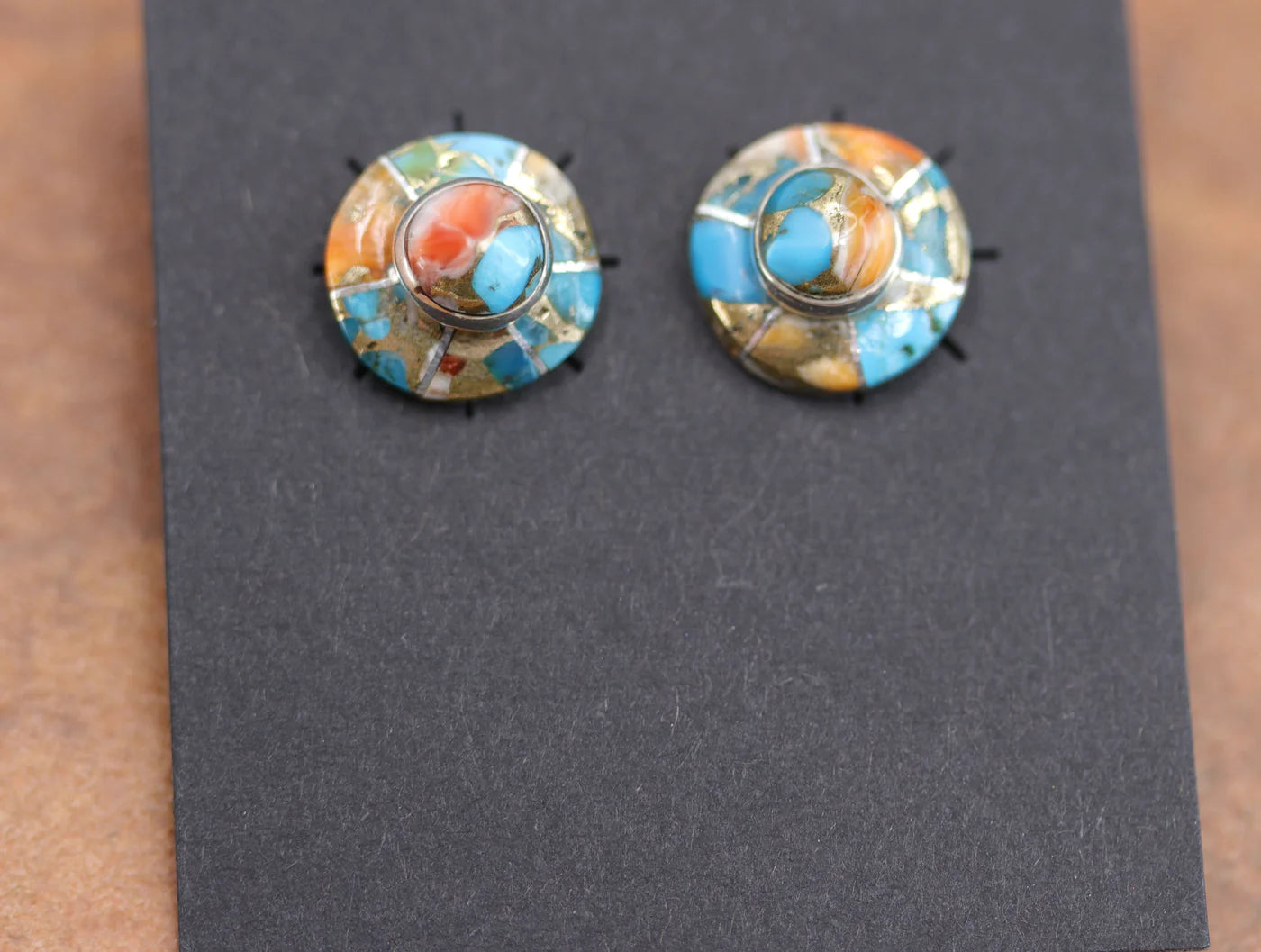 Beautiful Navajo Native American earrings. They are made from sterling silver and man made turquoise. The earrings are about 1/2" in diameter.