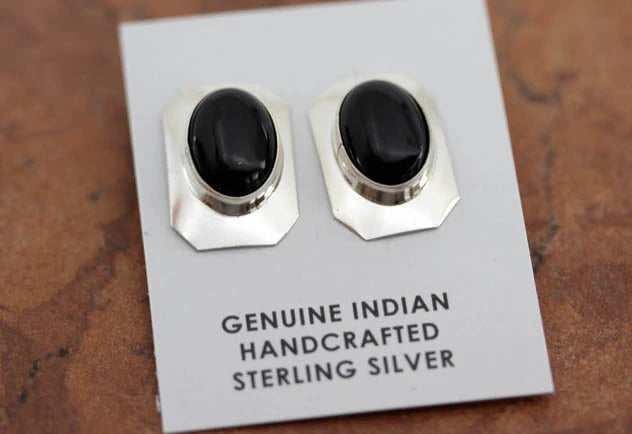 Sterling Silver Navajo Onyx Earrings by Wilson