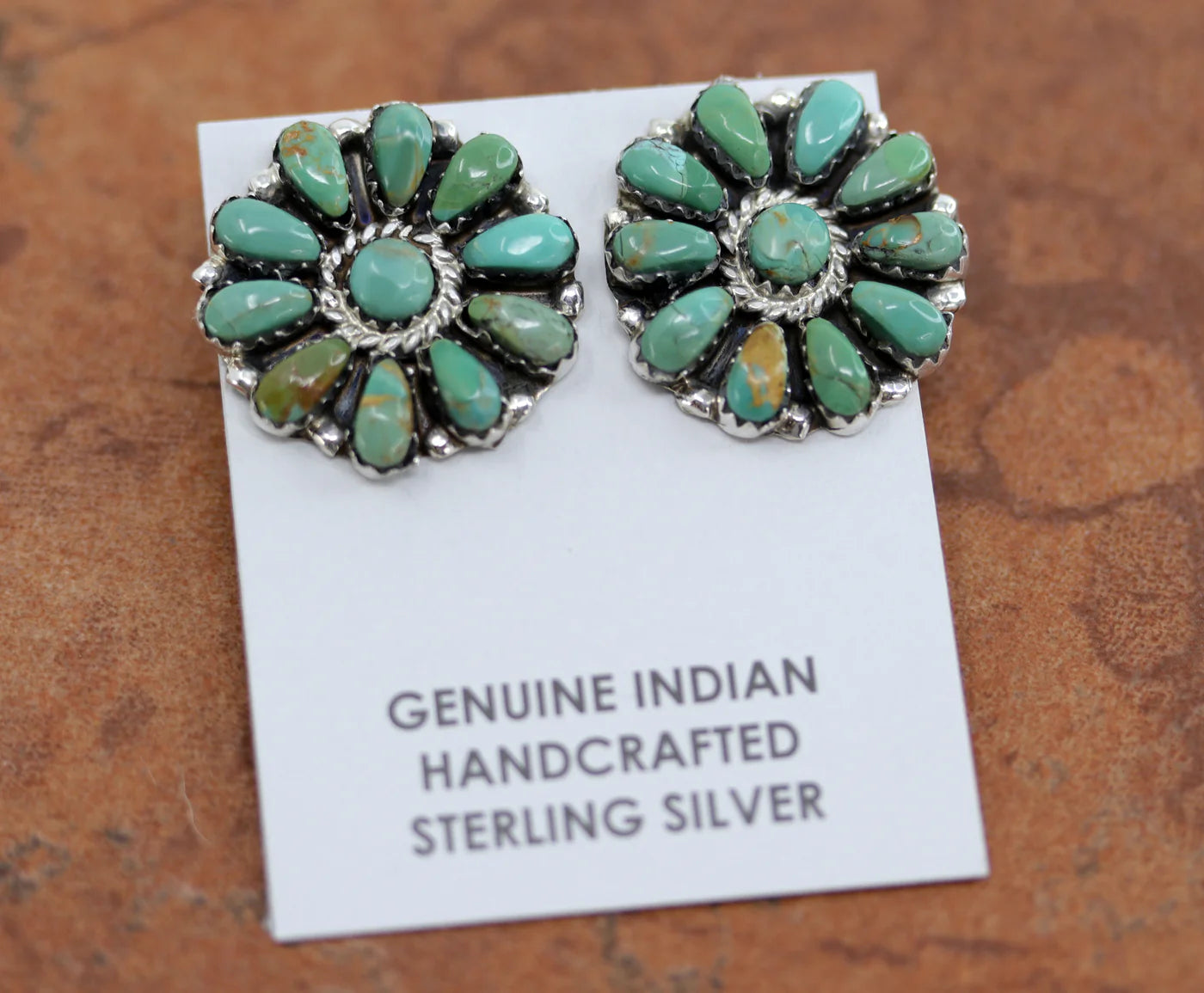 Sterling Silver Navajo Turquoise Cluster Earrings