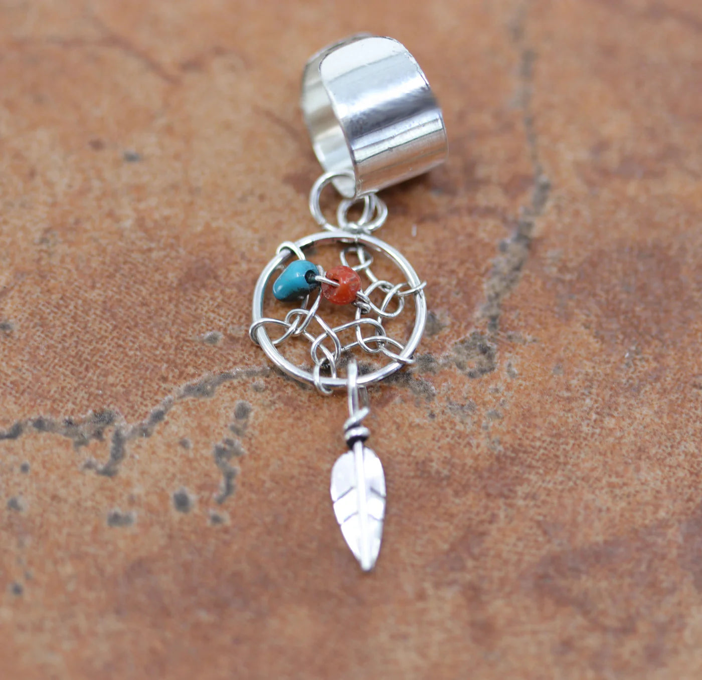 Sterling Silver Navajo Turquoise Dream Catcher Ear Cuff