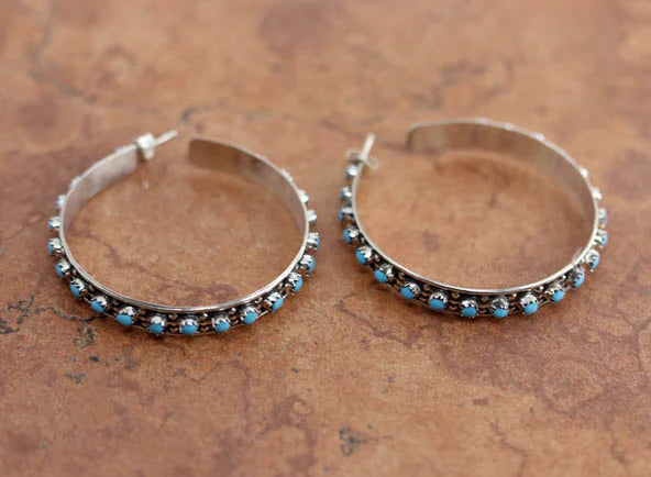 Sterling Silver Navajo Turquoise Hoop Earrings