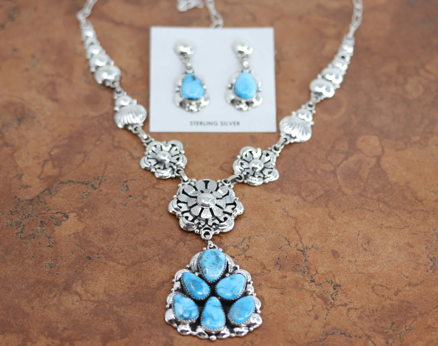 Sterling Silver Navajo Turquoise Necklace and Earrings Set