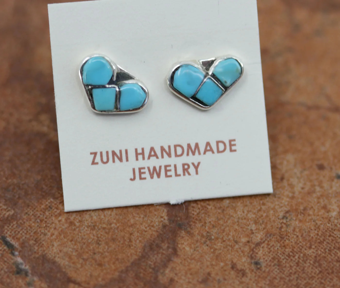 Beautiful Zuni Native American earrings. They are made from sterling silver and turquoise. Each earring is 3/8" in length, and about 1/4" in width.