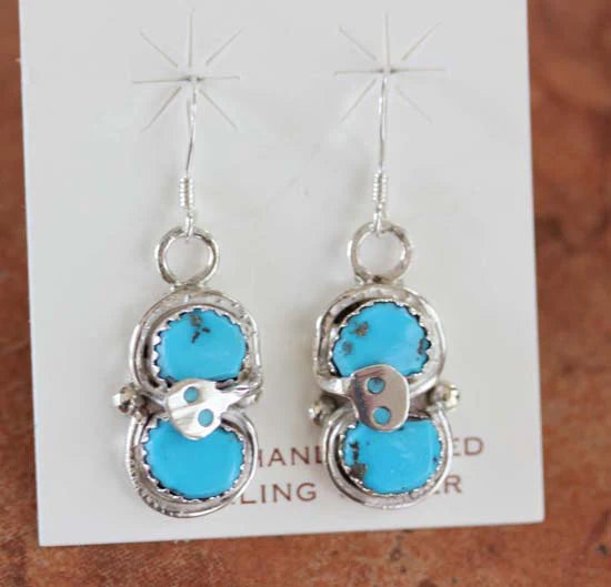 Beautiful Zuni Native American earrings by Effie Calavaza's Family made from sterling silver and turquoise. The earrings are about 1 3/8" in length including the hook and 1/2" in width. They are stamped Zuni and Effie C.