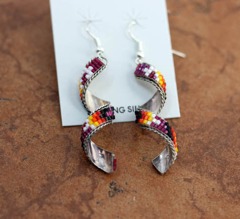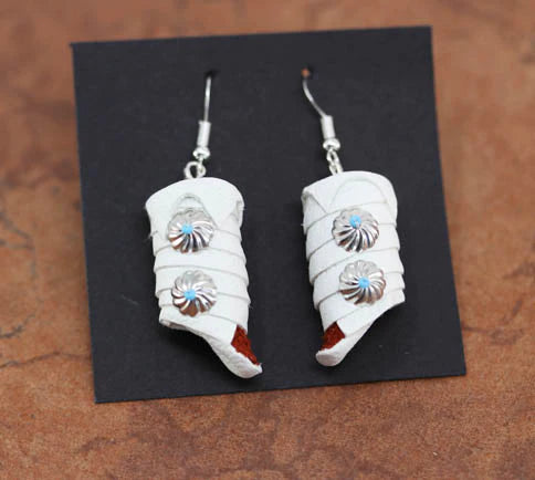 Sterling Silver Leather Navajo Moccasin Boot Earrings