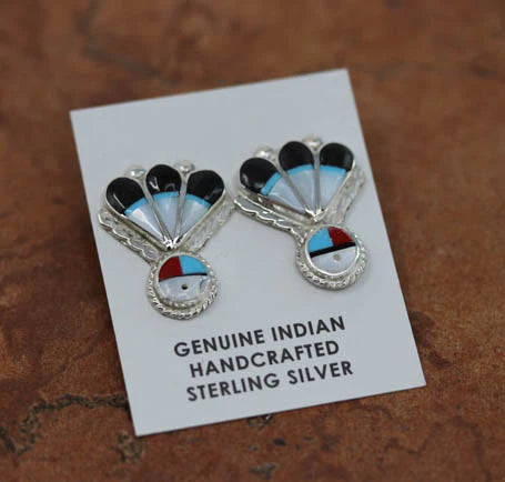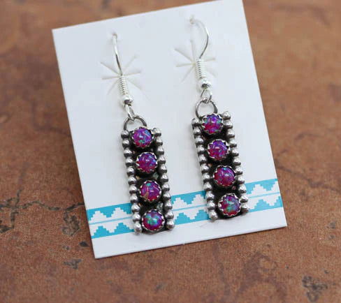 Sterling Silver Navajo Created Opal Bear Paw Earrings