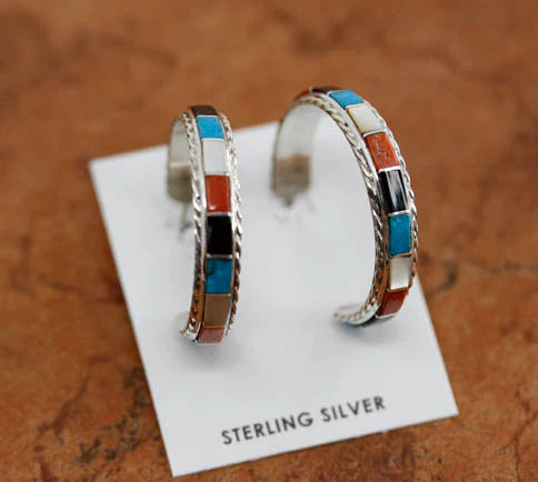 Sterling Silver Zuni Multi-Stone Butterfly Earrings