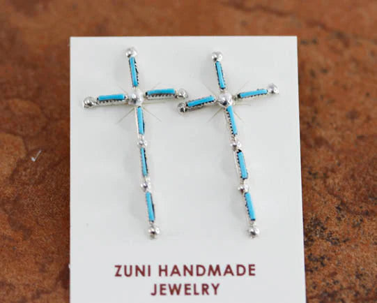 Sterling Silver Navajo Mojave Turquoise Cluster Earrings