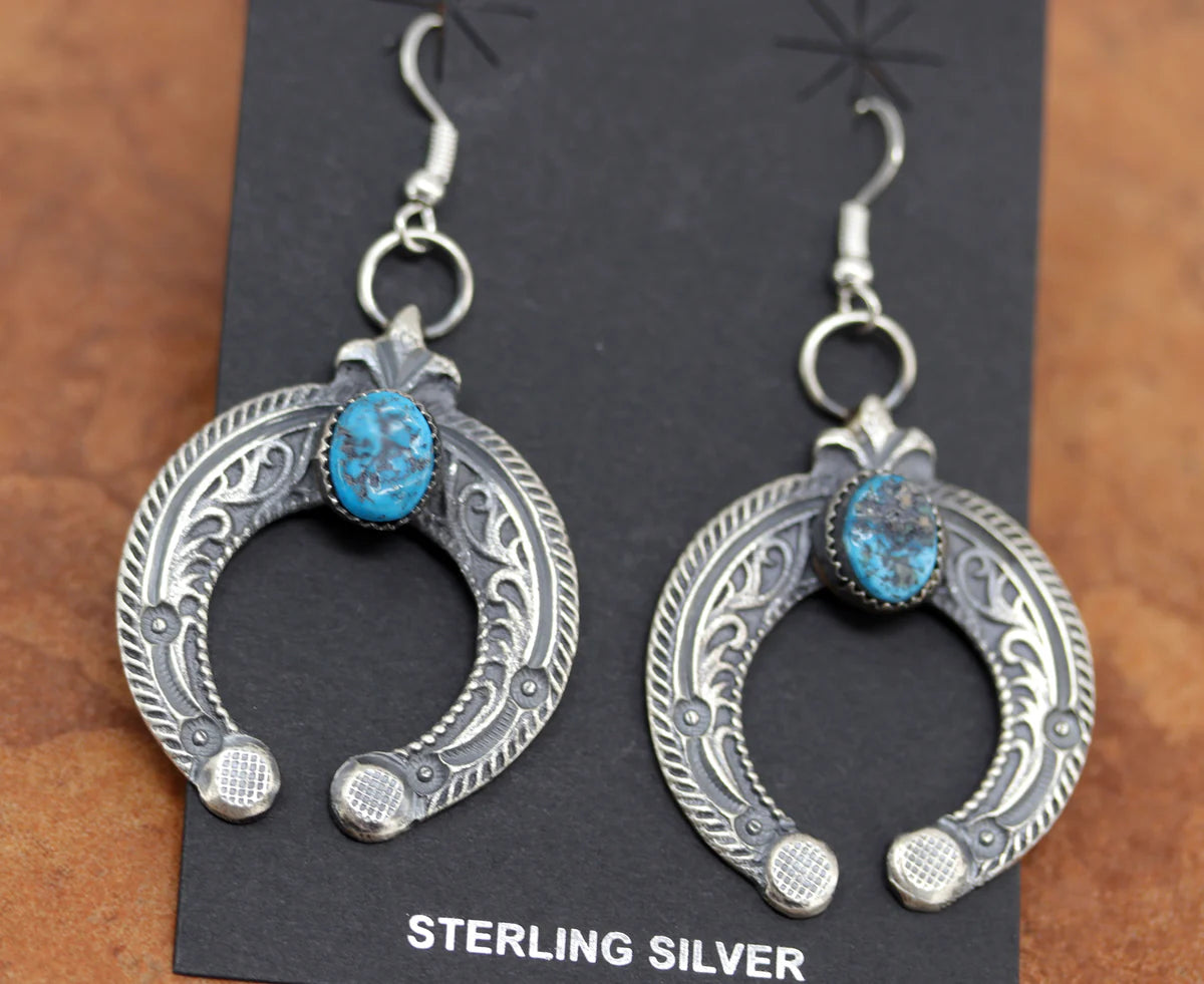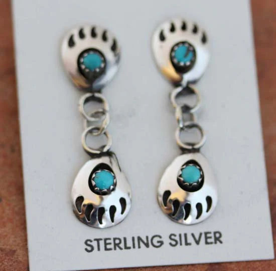 Sterling Silver Navajo Turquoise Bear Paw Earrings