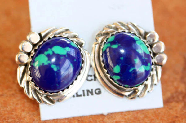 Sterling Silver Navajo Azurite Earrings by Cadman