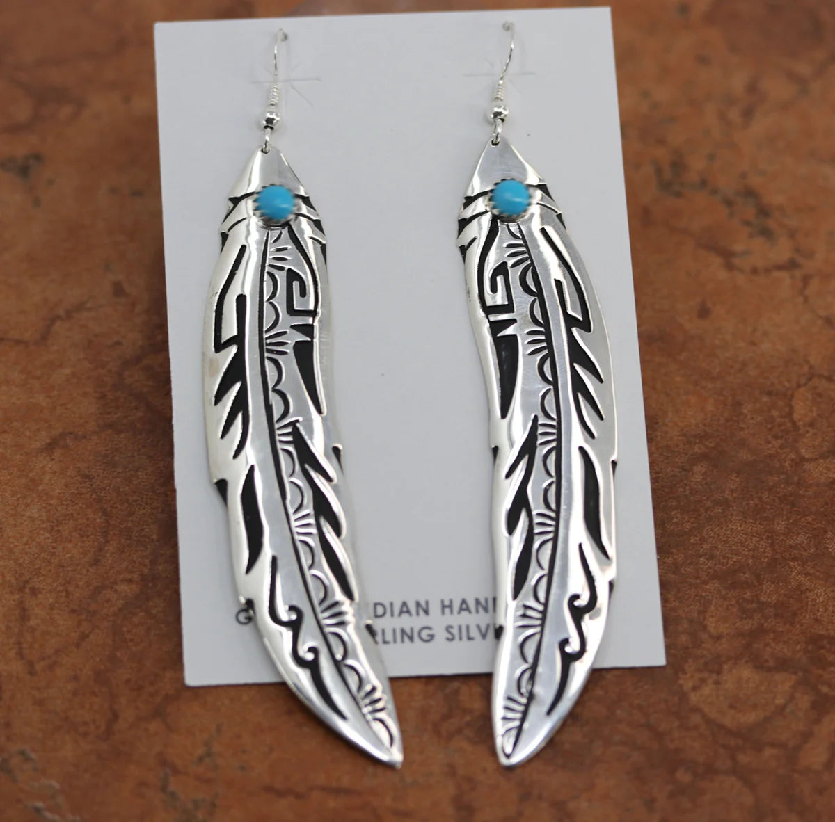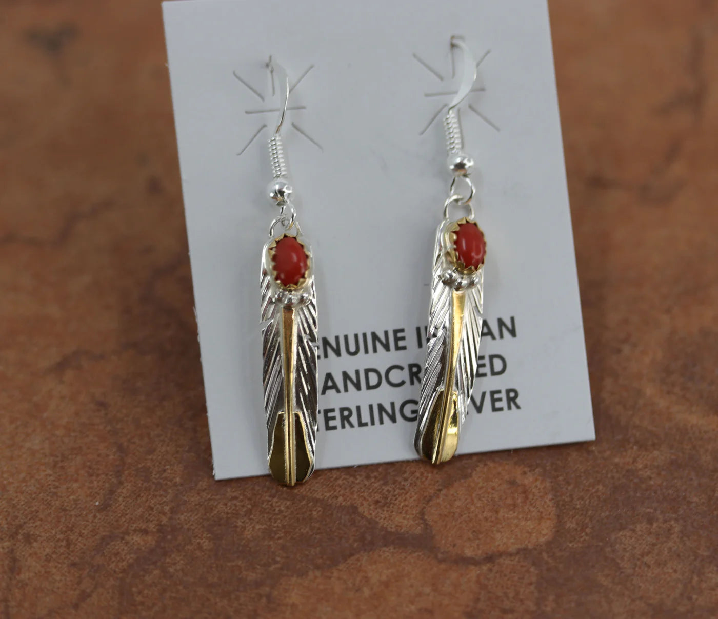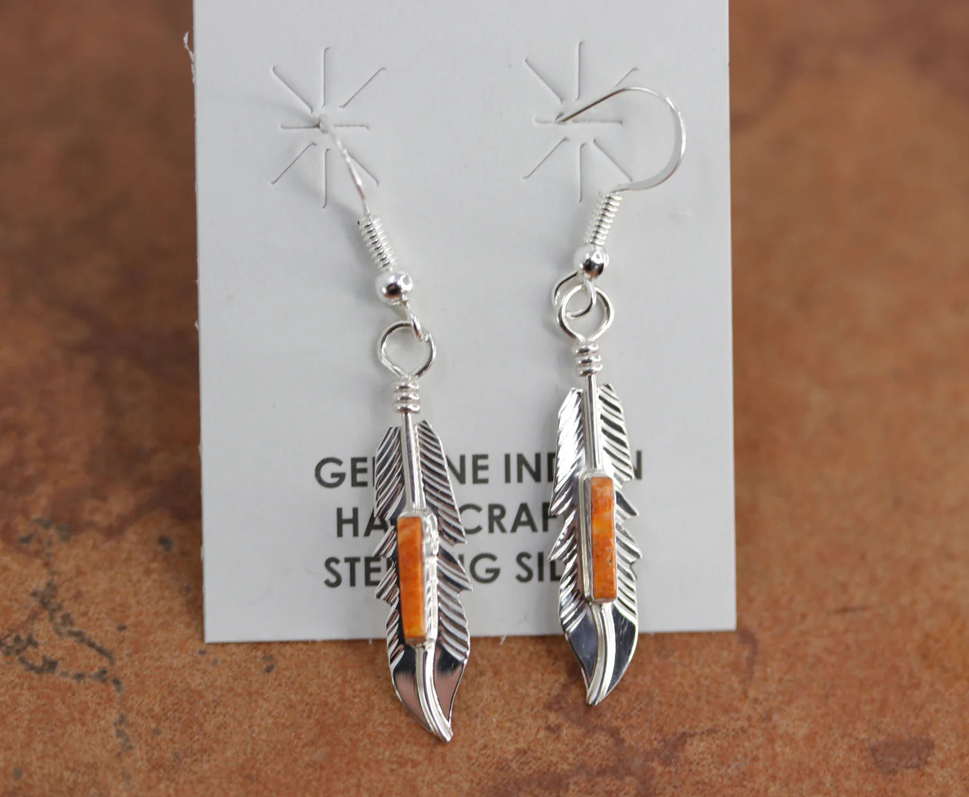 Sterling Silver Navajo Spiny Oyster Feather Earrings