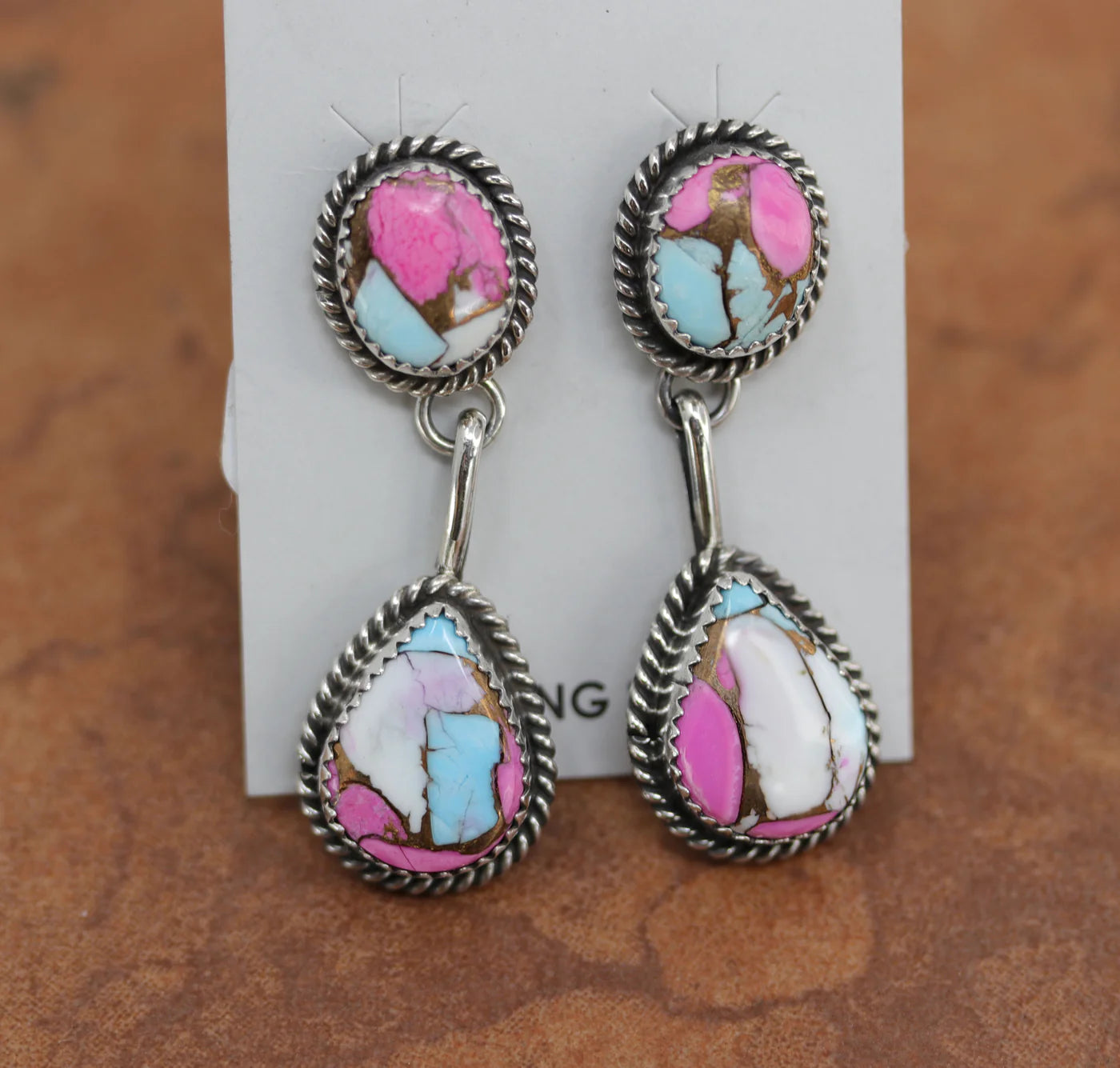 Sterling Silver Navajo Cotton Candy Dahlia Turquoise Earrings