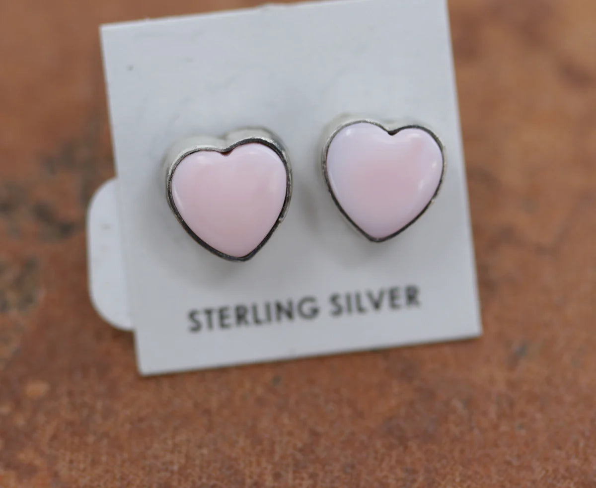 Sterling Silver Navajo Pink Quartz Heart Earrings