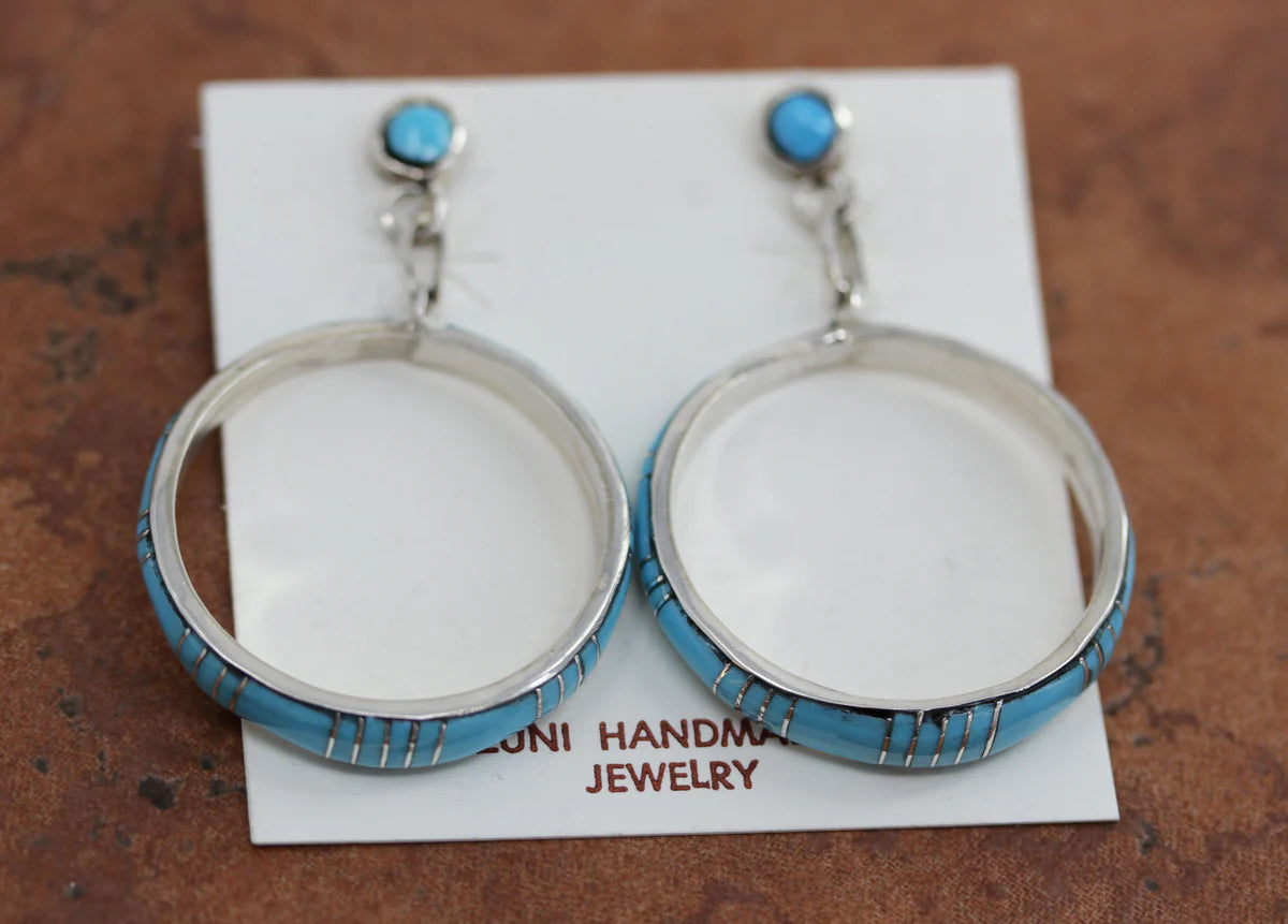 Sterling Silver Zuni Turquoise Hoop Earrings