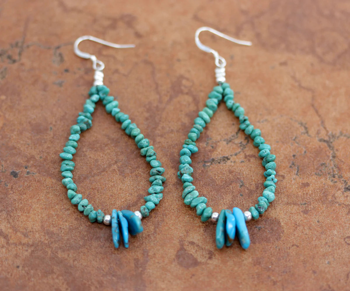 Sterling Silver Navajo Turquoise Hoop Earrings