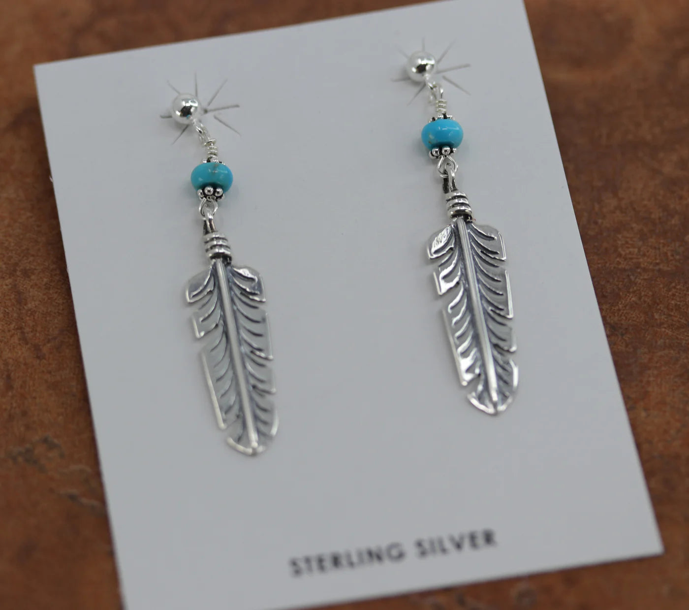 Sterling Silver Navajo Turquoise Earrings by Cadman