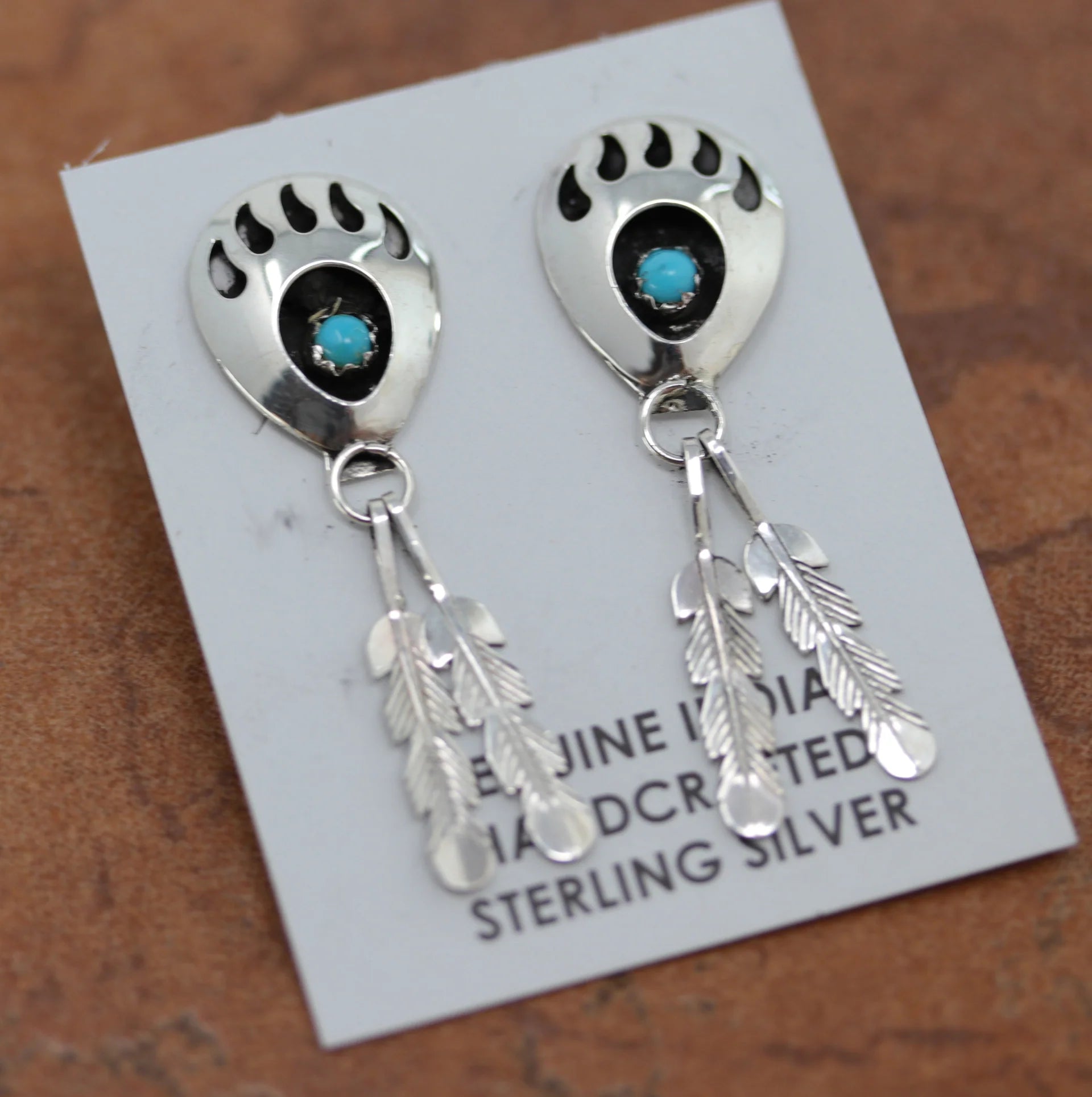 Sterling Silver Navajo Turquoise Bear Paw Earrings