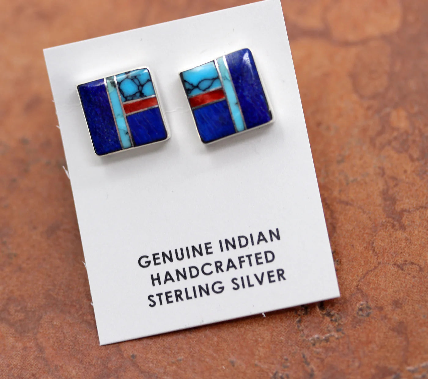 Sterling Silver Navajo Multi-Stone Inlay Earrings