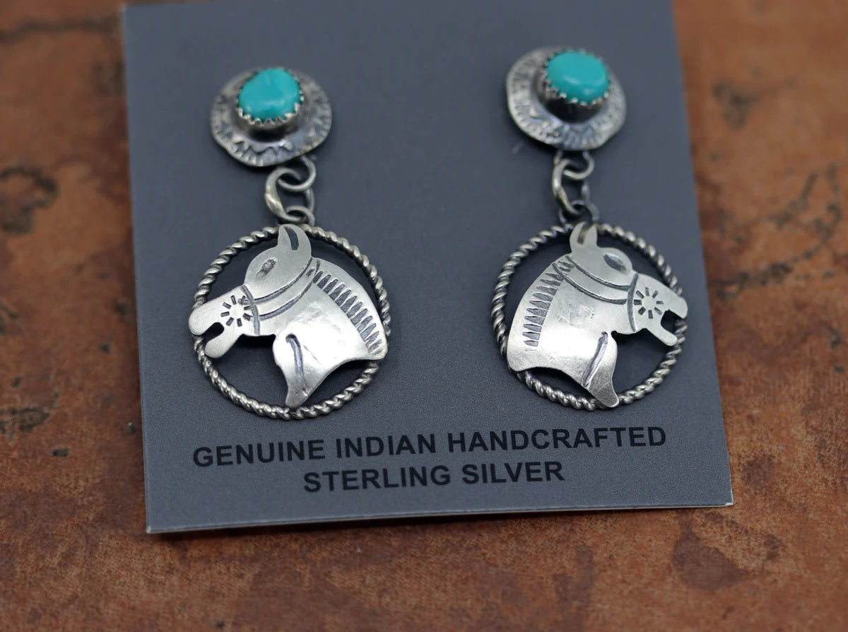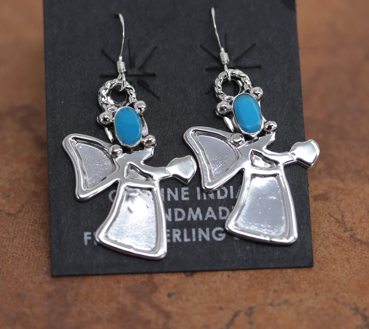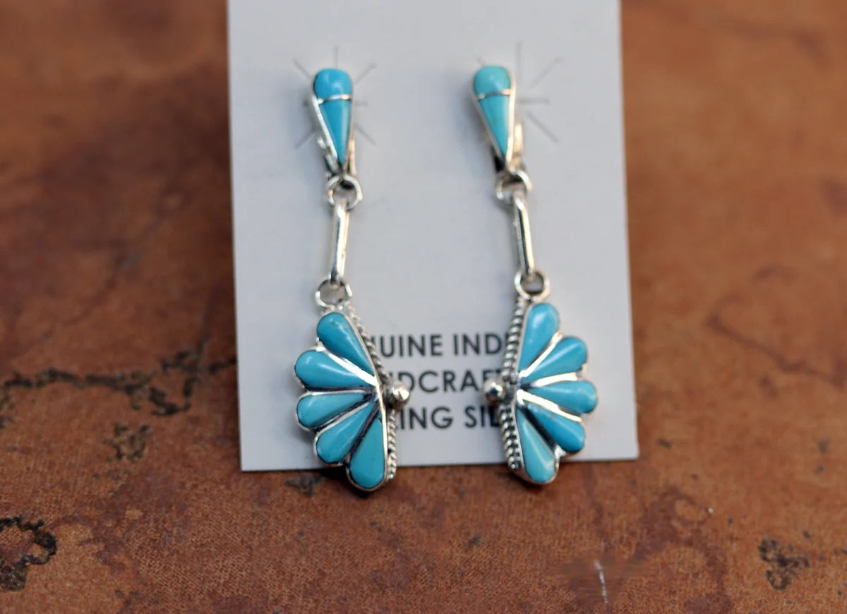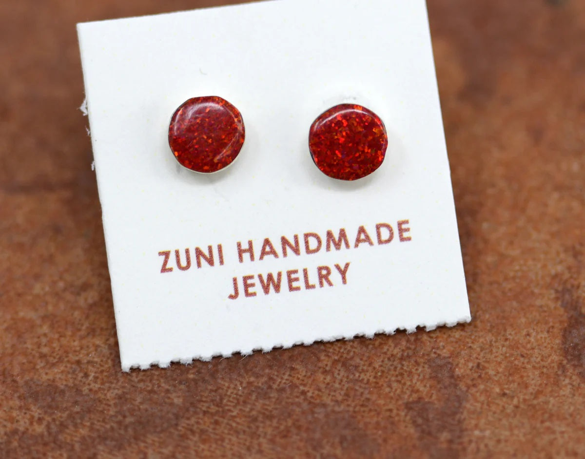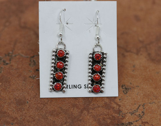 Sterling Silver Navajo Coral Medicine Wheel Earrings
