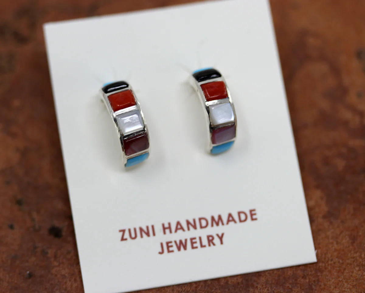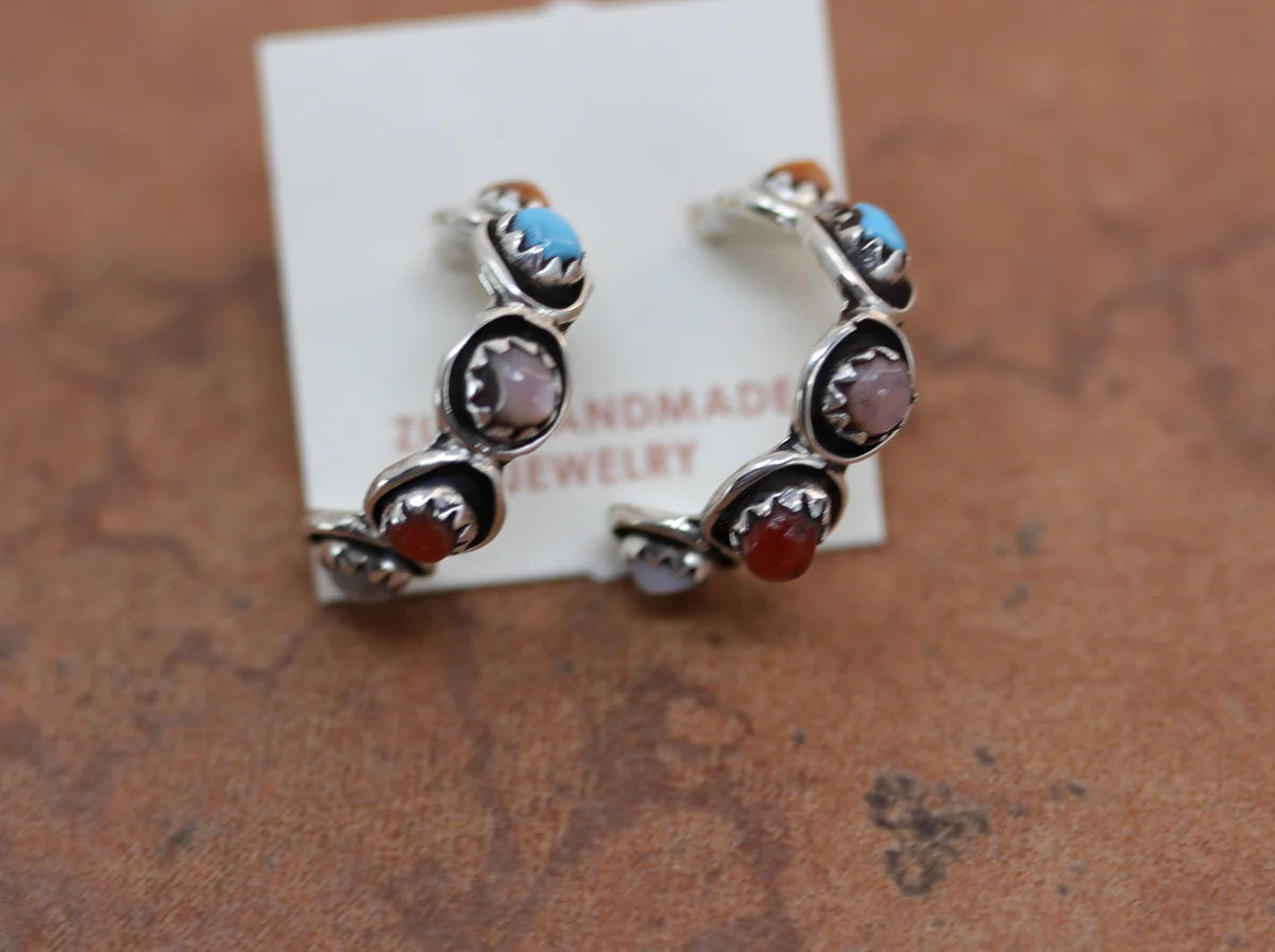 Sterling Silver Zuni Multi-Stone Hoop Earrings