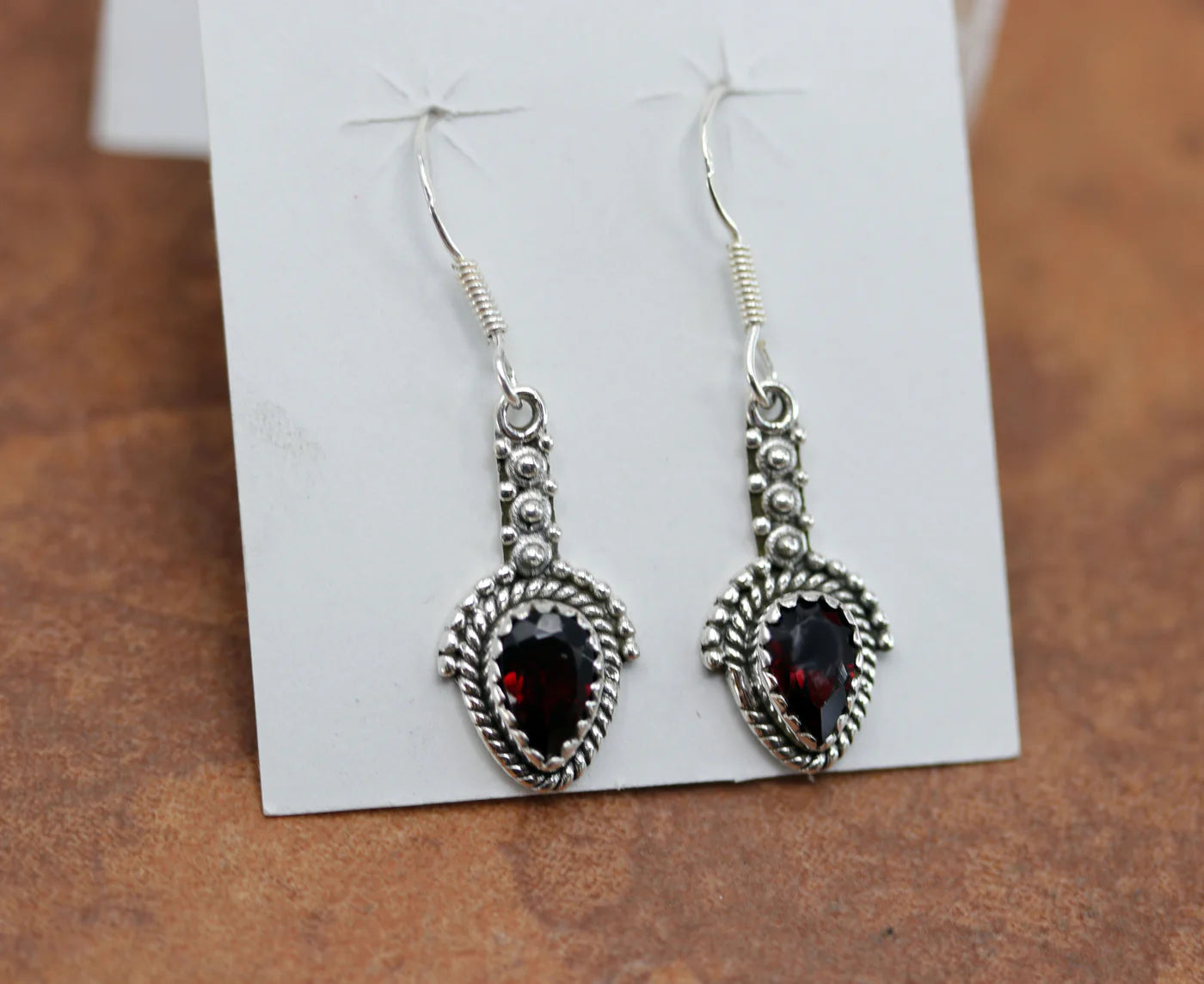 Beautiful earrings made from sterling silver and garnet. The earrings about 1 1/2" long including the hook and 1/2" wide.