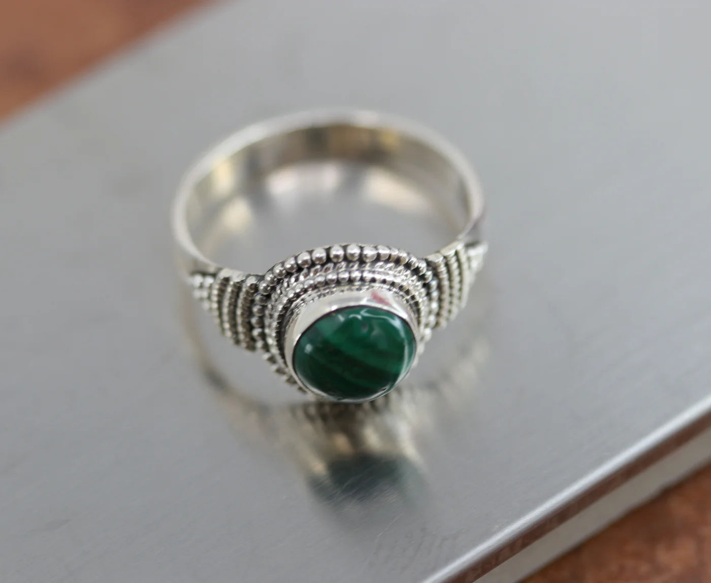 Sterling Silver Malachite Ring Size 8