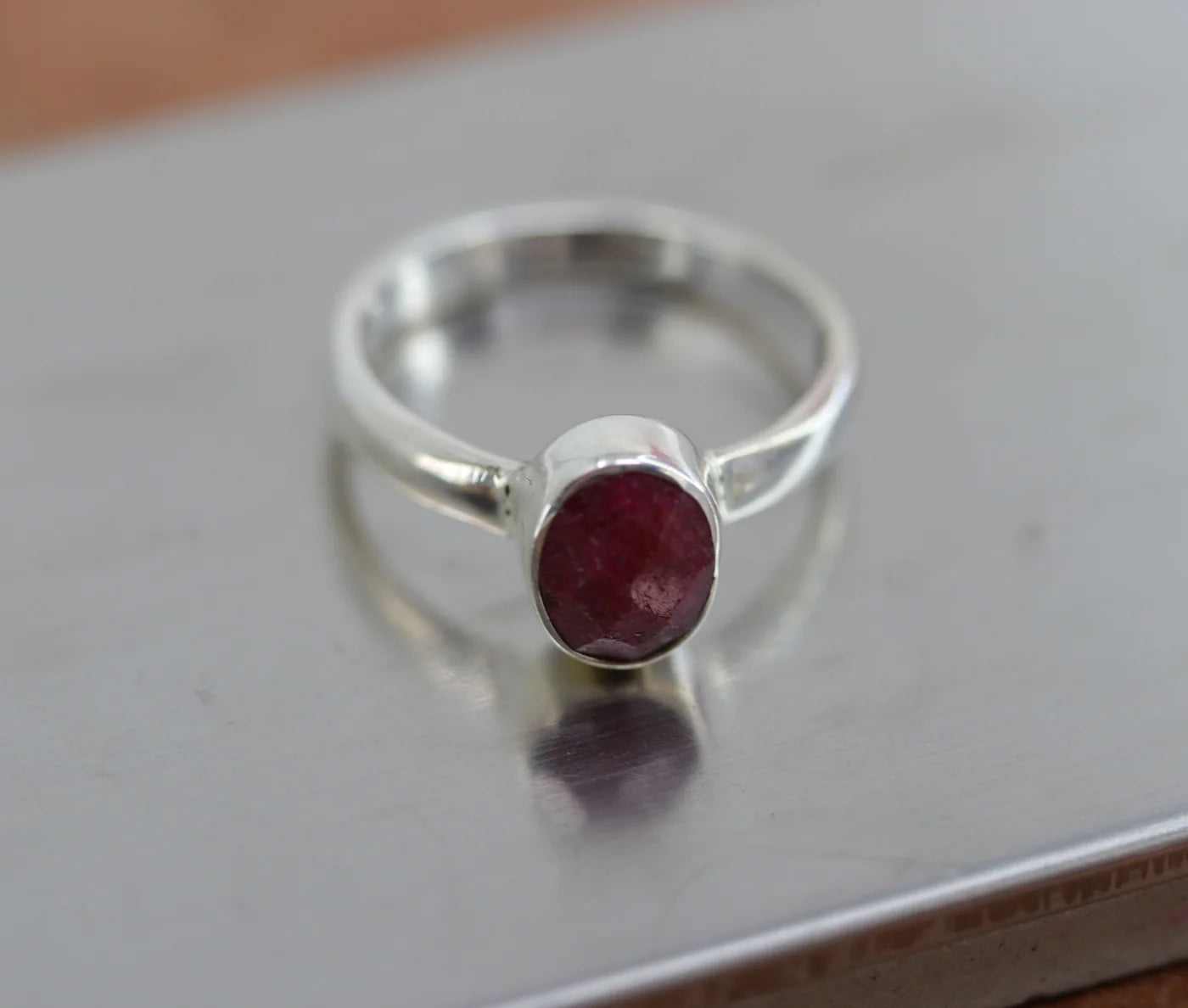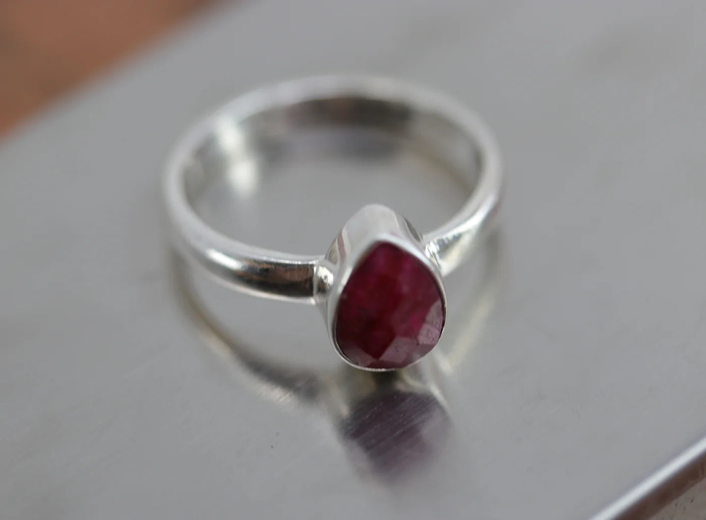 Sterling Silver Faceted Ruby Ring Size 8