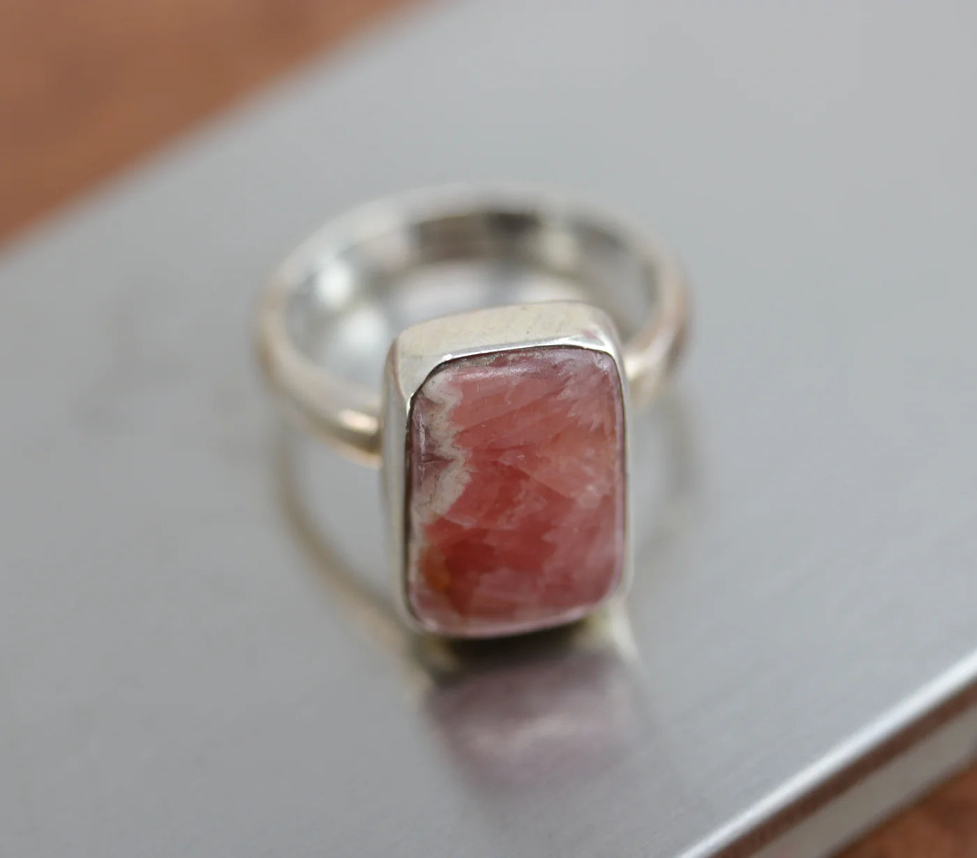 Sterling Silver Pink Rhodochrosite Ring Size 7 1/2