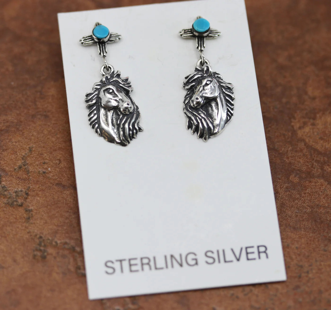 Sterling Silver Turquoise Zia Horse Earrings