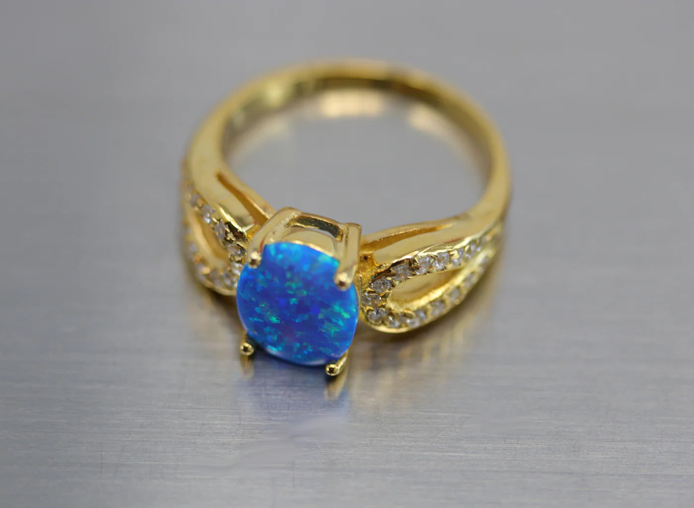 Sterling Silver Gold Overlay Opal Ring Size 6