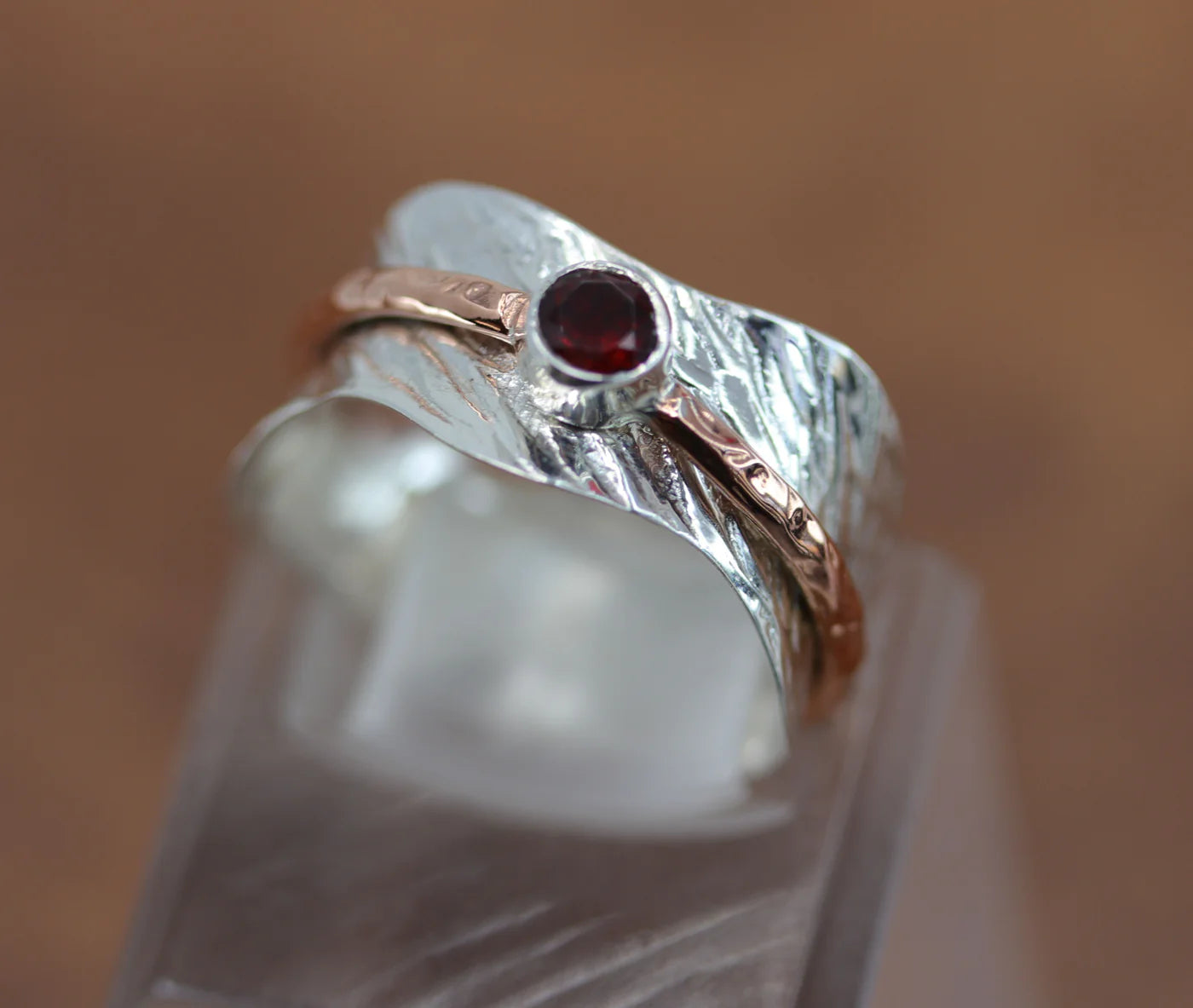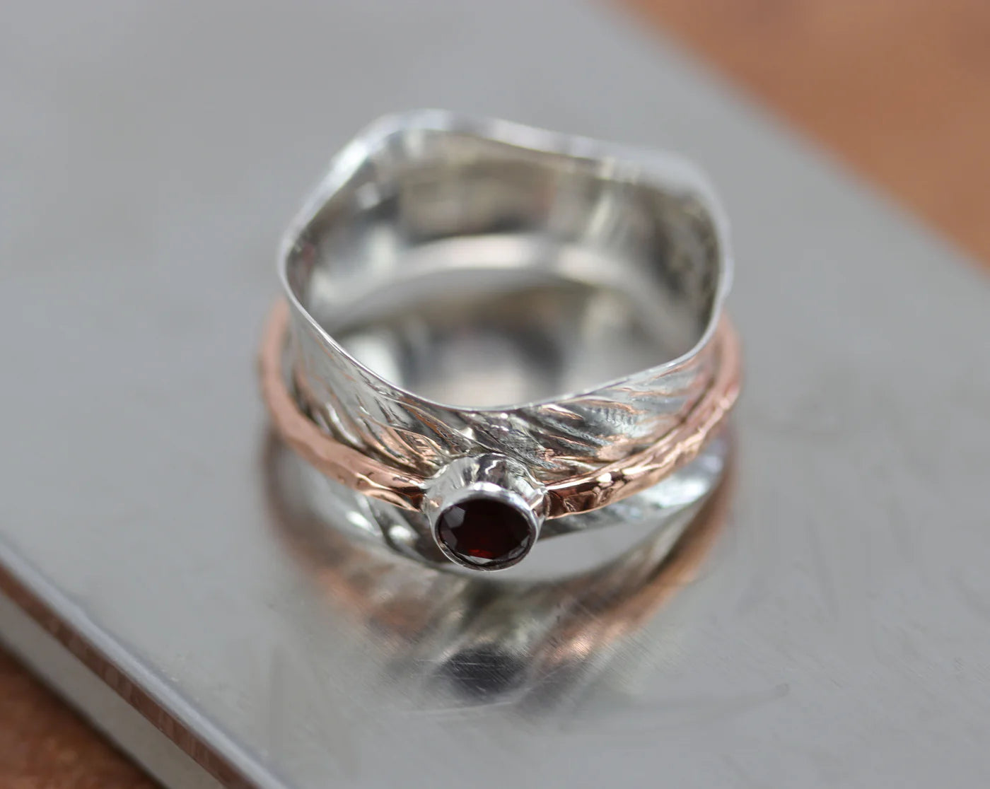 Sterling Silver Garnet Spinner Ring Size 8