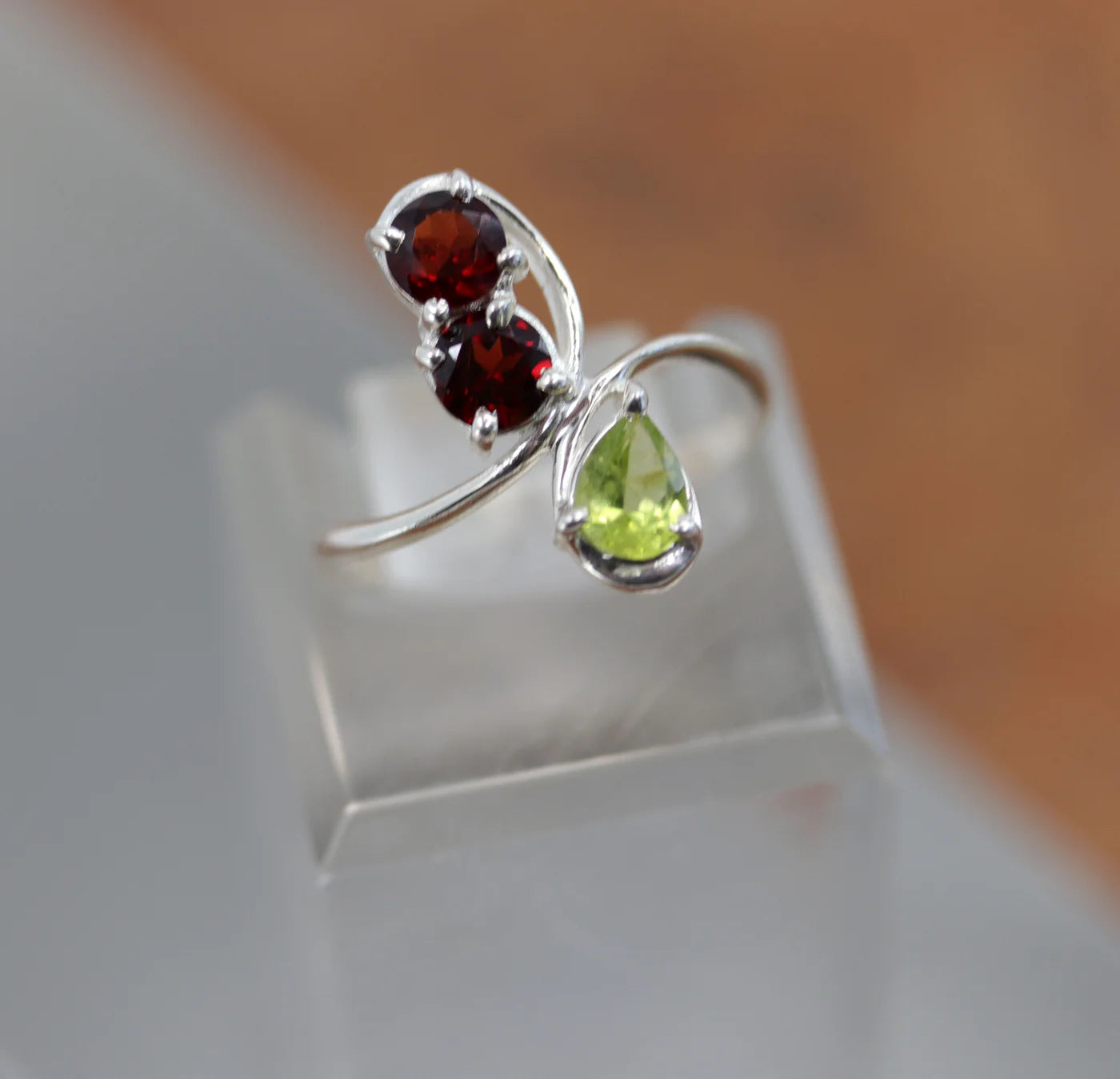 Sterling Silver Garnet Peridot Ring Size 8 1/2