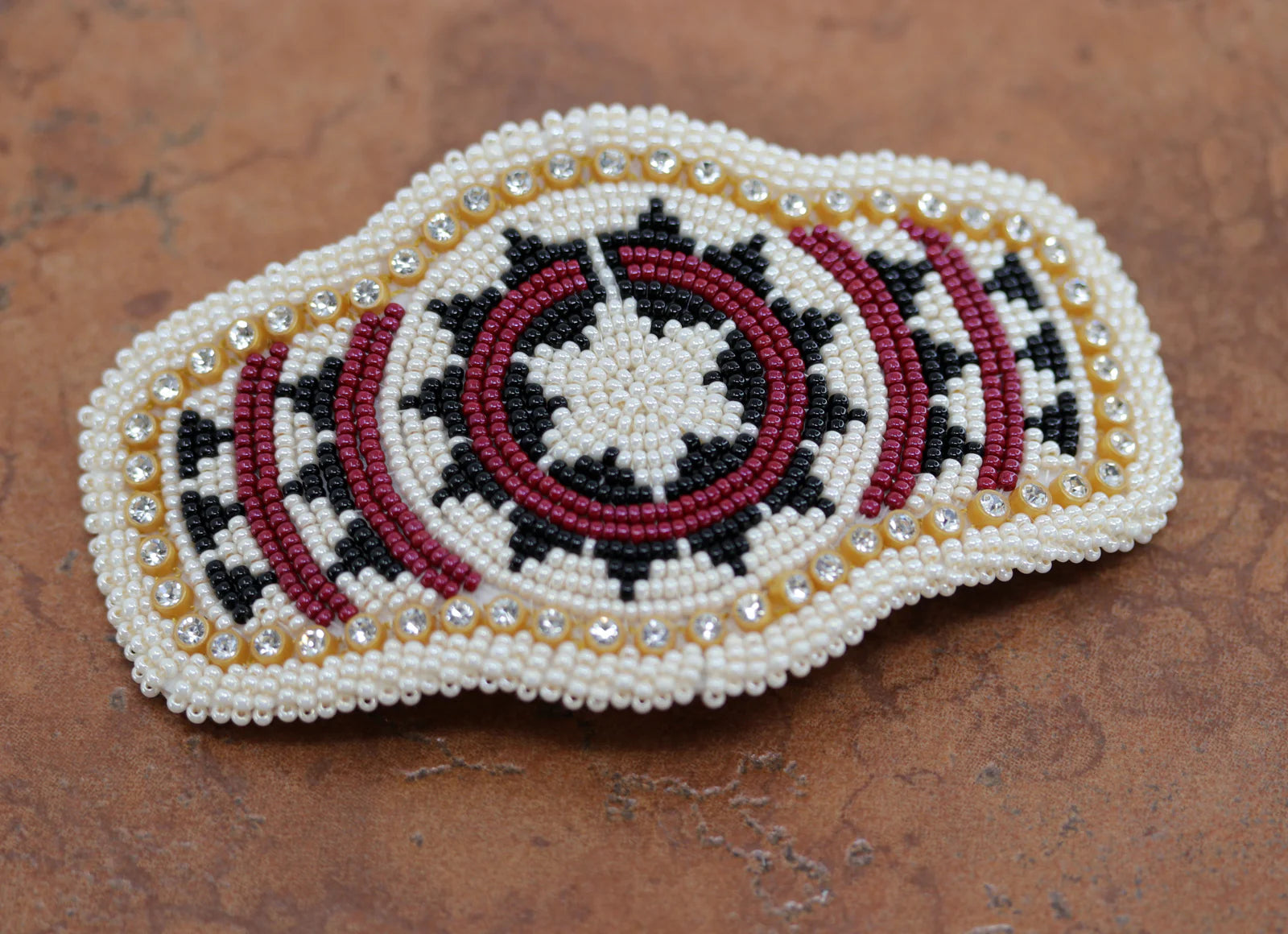 Beautiful Navajo Native American Beaded Barrette made from stainless steel, leather, and beads. It is 3" long, and about 5" wide.