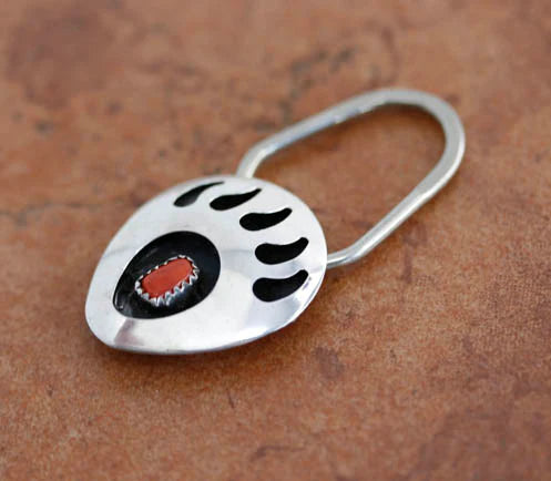 Sterling Silver Navajo Bear Paw Coral Key Chain