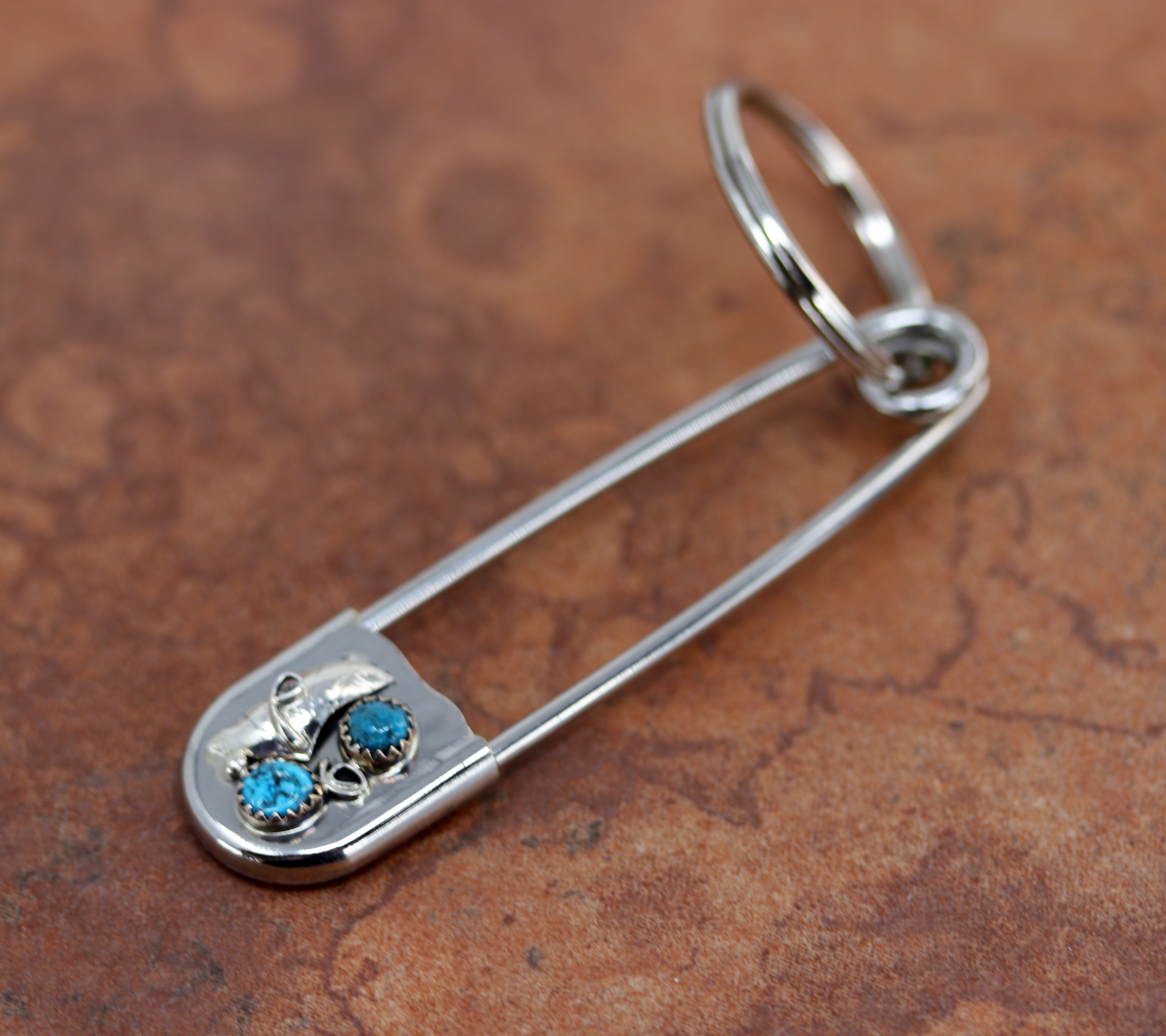 Sterling Silver Navajo Bear Paw Turquoise Key Chain