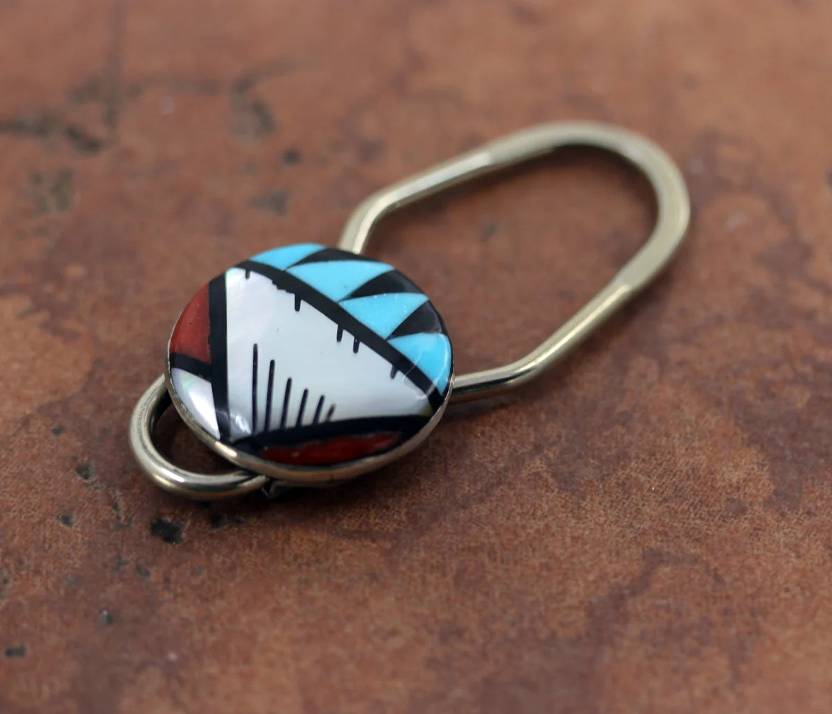 Sterling Silver Navajo Turquoise Coral Key Chain