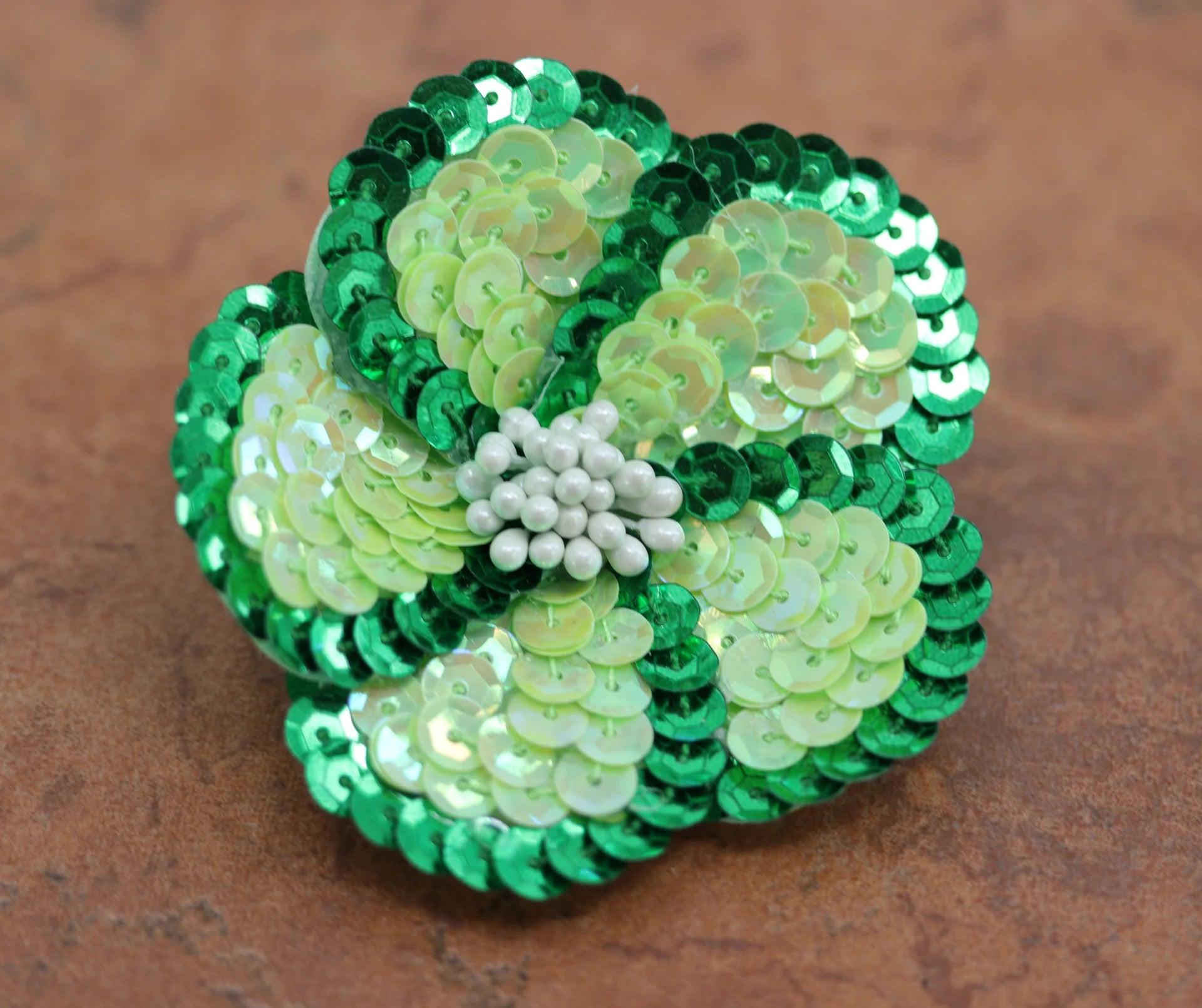 A Beautiful Navajo Native American floral barrette and pin. It has a diameter of 2 1/2 inches across and has a clip made of stainless steel.