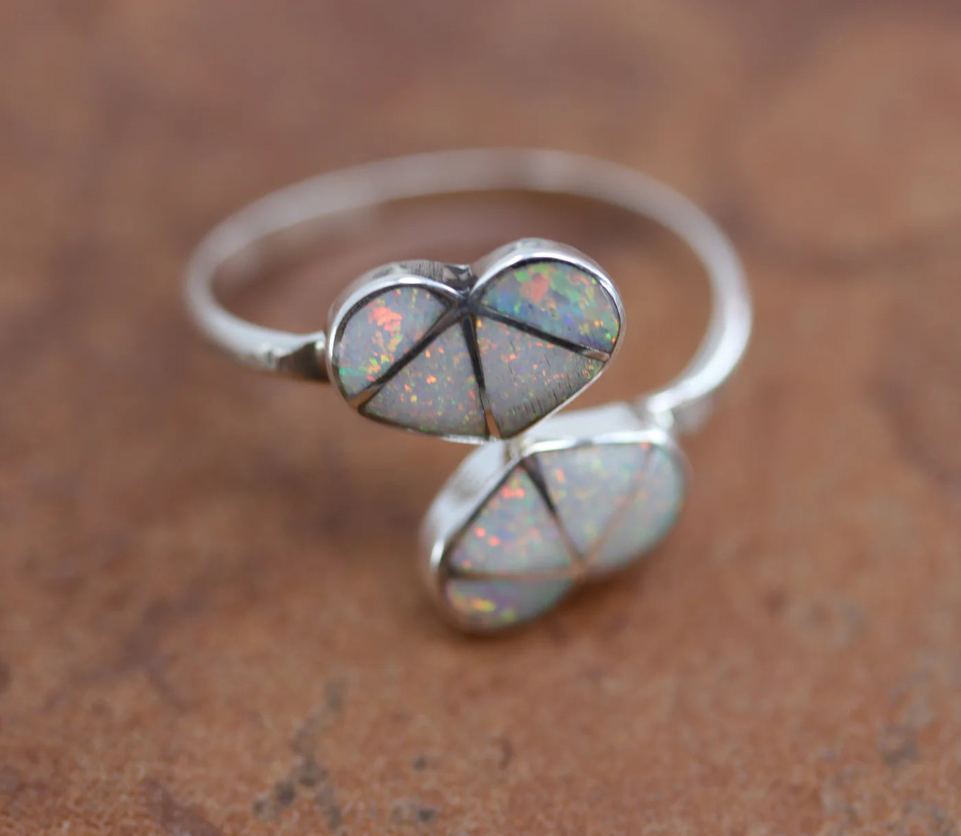 Sterling Silver Created Opal Heart Spoon Ring Size 8-10