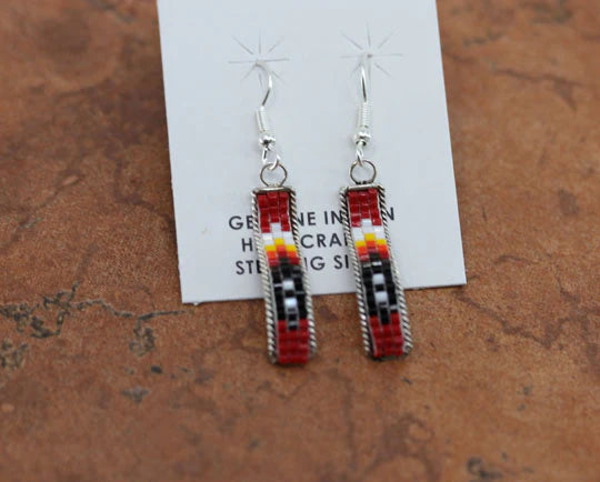 Beautiful Navajo sterling silver Earrings. They are made from sterling silver and beads. The earrings about 1 7/8" long including the hook and 1/4" wide.