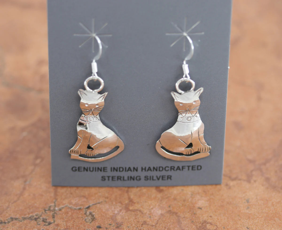Beautiful Native American earrings. They are made from sterling silver. The earrings are about 1 5/8" in length including the hook and 1 3/4" wide.