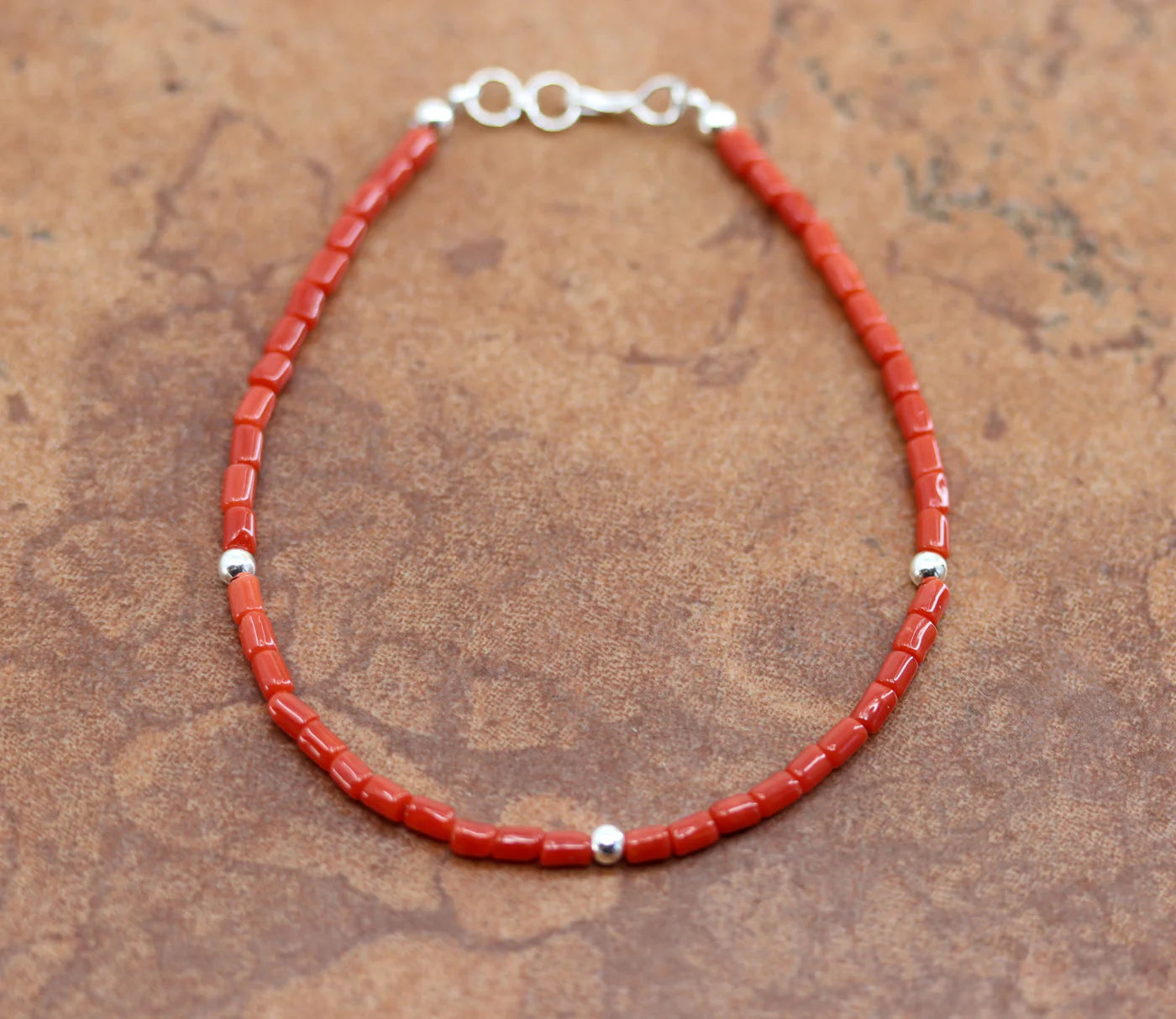 Sterling Silver Navajo Coral Heishi Beaded Bracelet