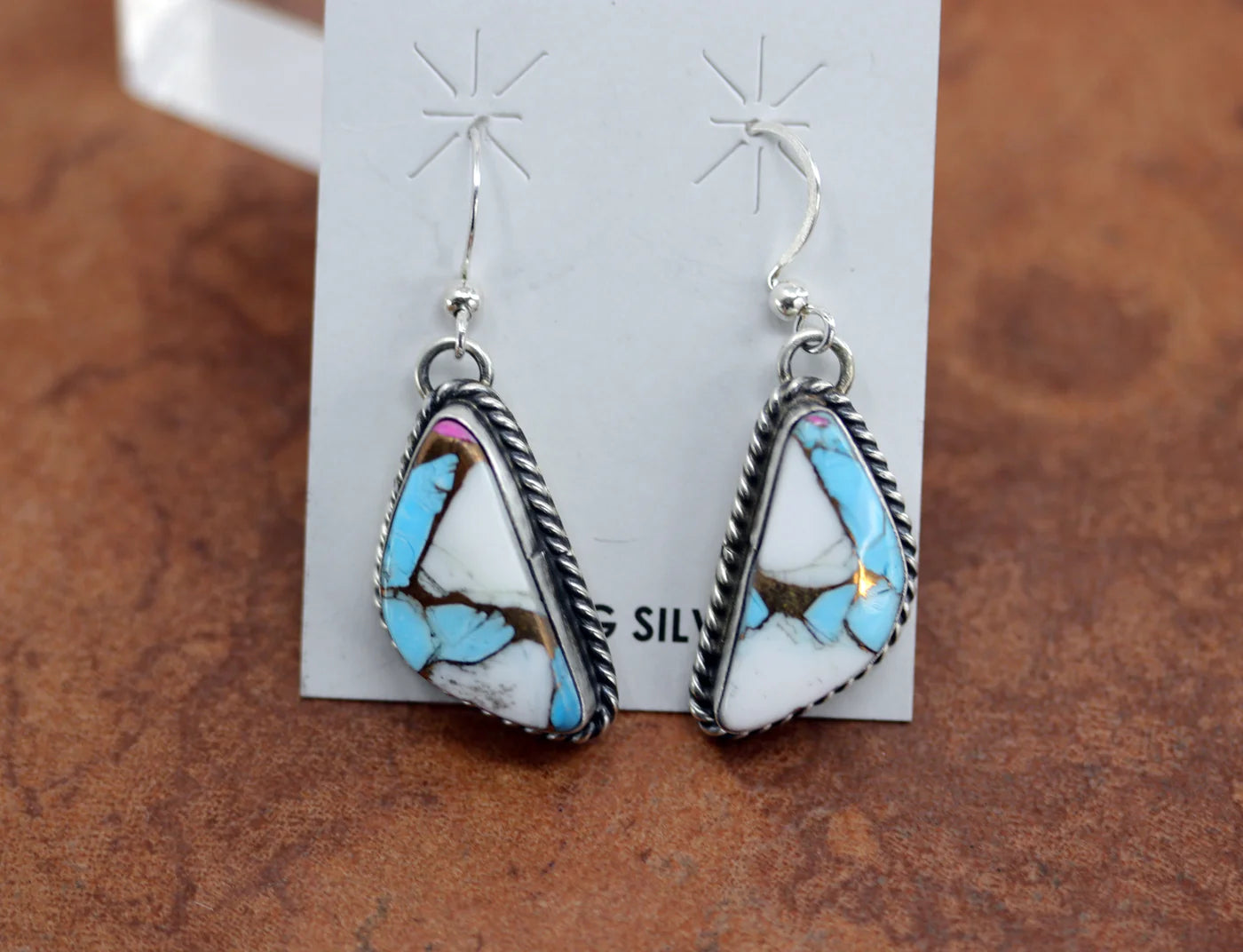Sterling Silver Navajo Cotton Candy Dahlia Turquoise Earrings