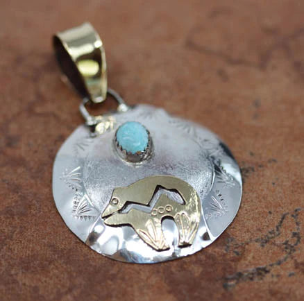 Sterling Silver Navajo Gold Turquoise Bear Pendant