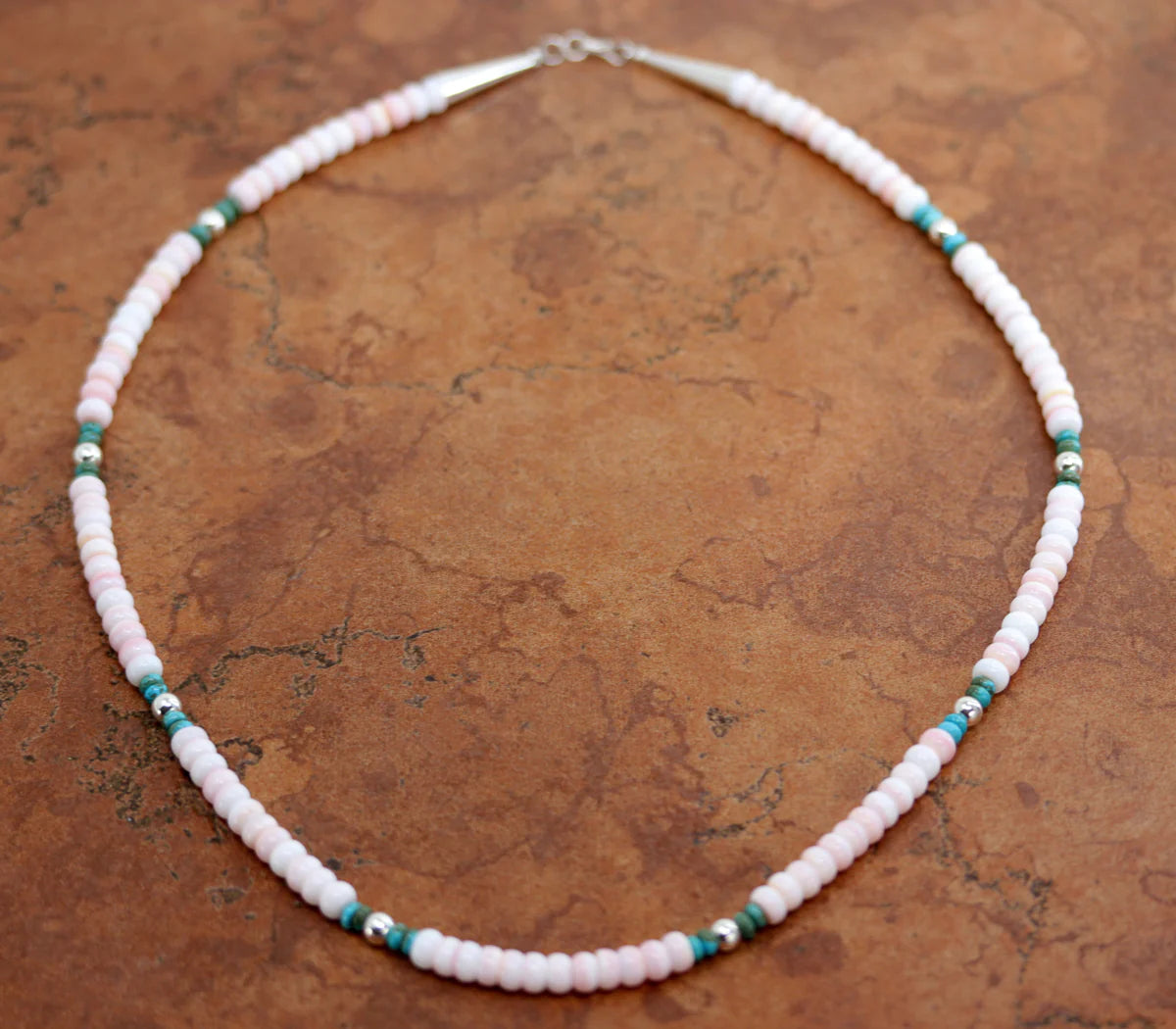 Sterling Silver Navajo Heishi Pink Conch Turquoise Necklace